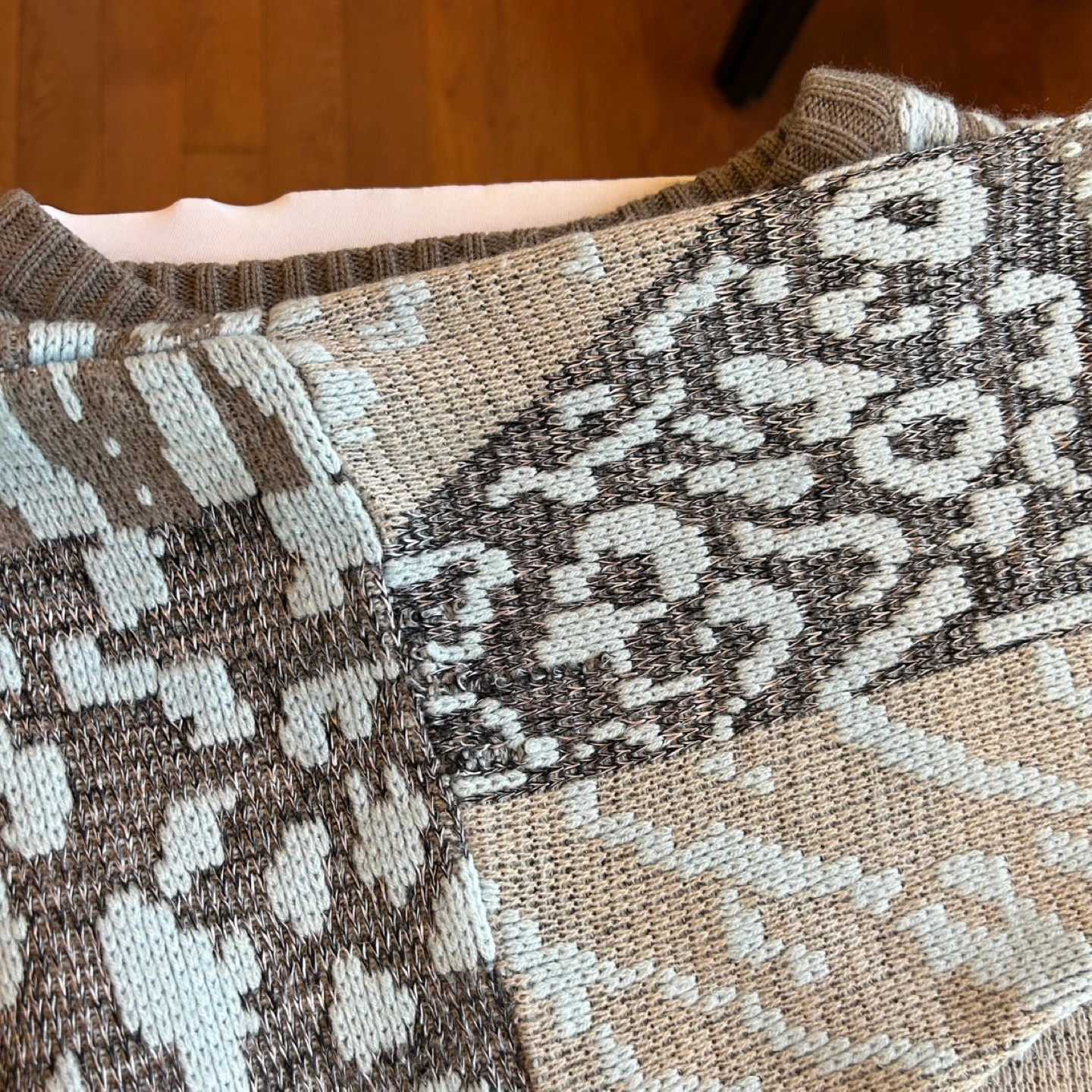 Flaws: some runs and loose threads along sleeve seams (pictured) - not at all noticeable because of pattern