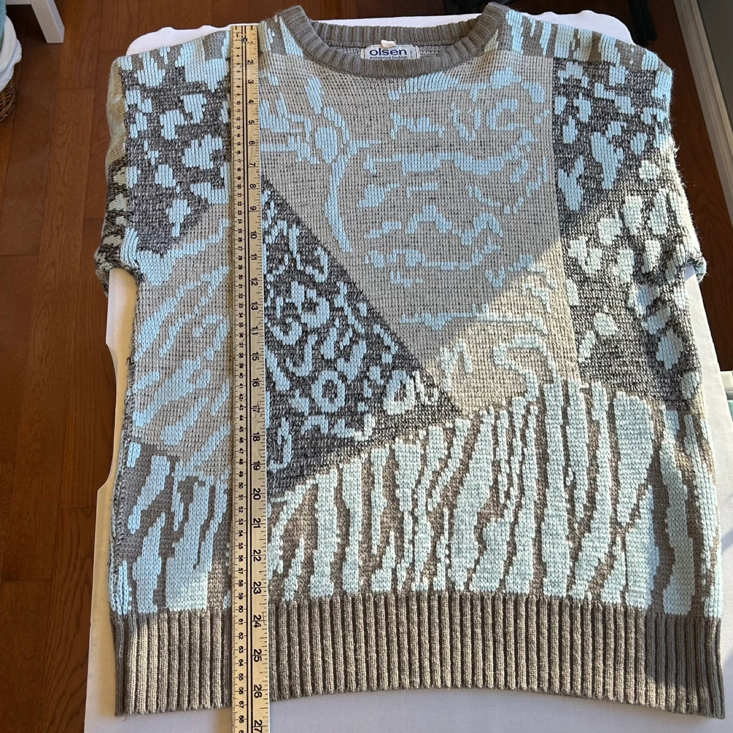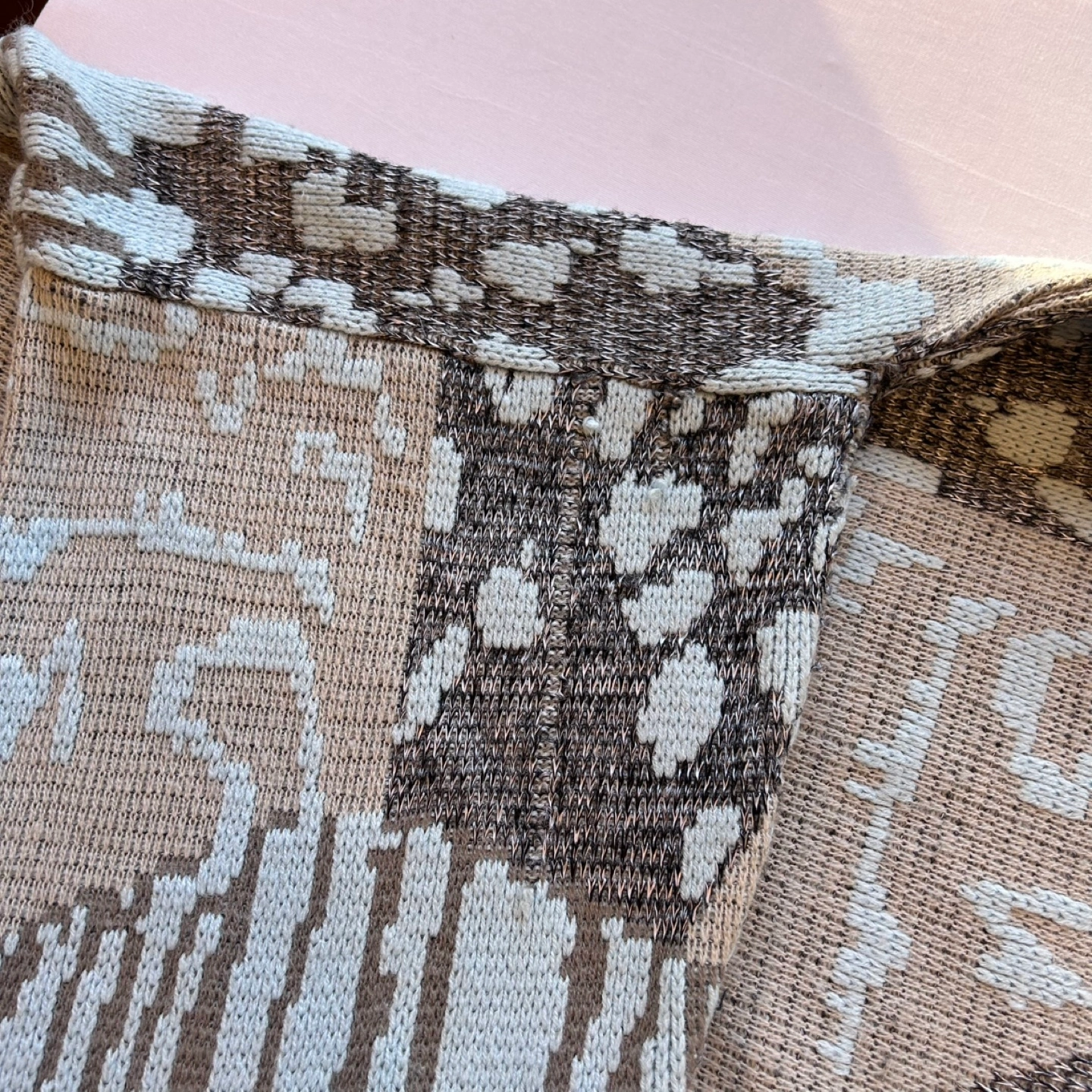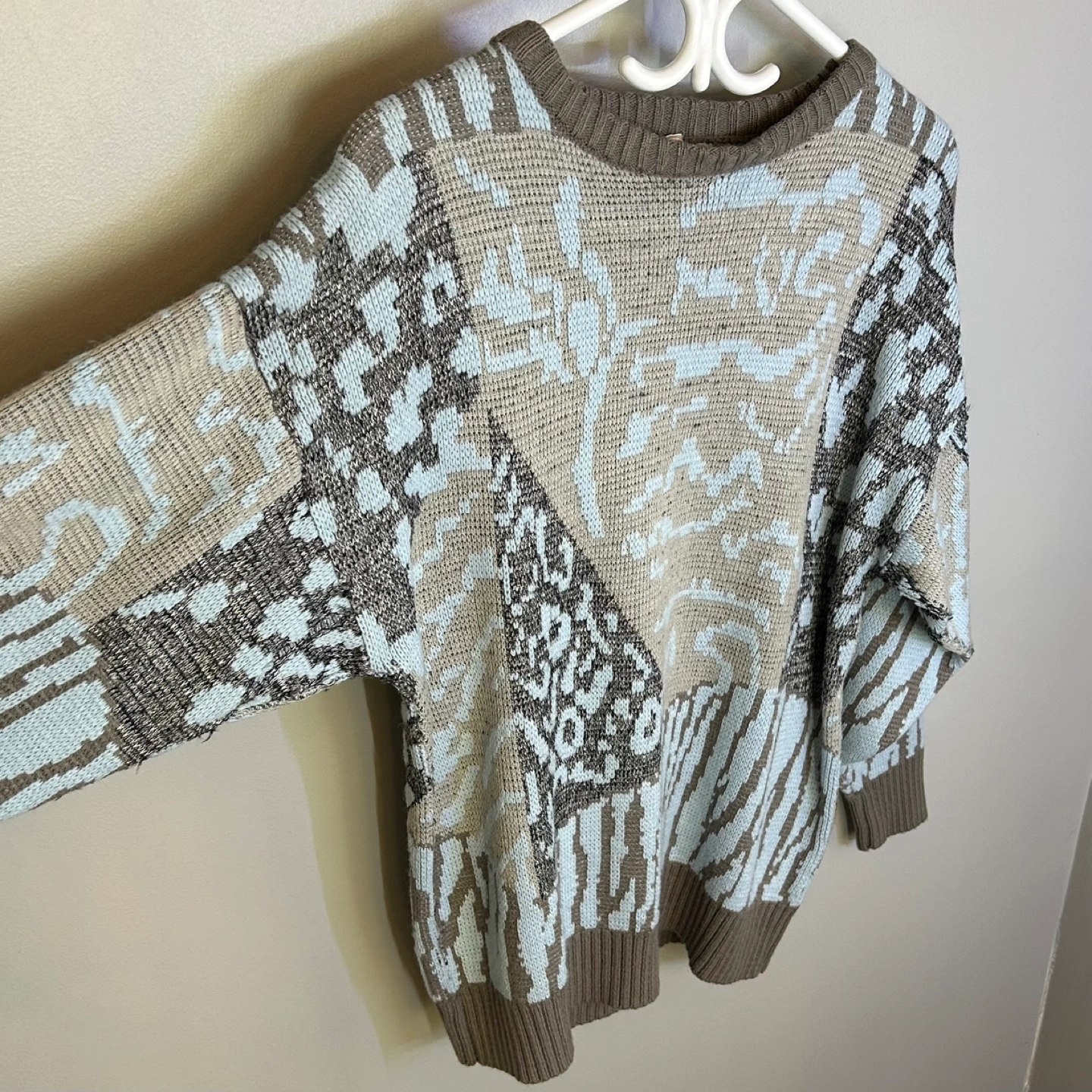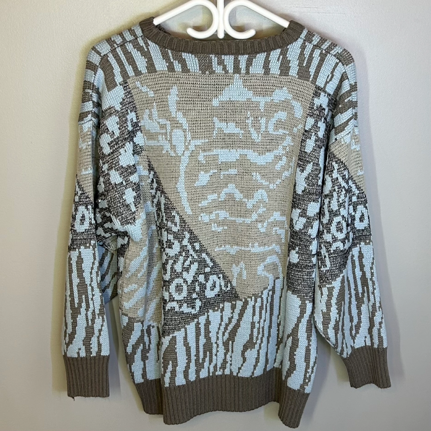 Vintage 80s Olsen Colorblock Animal Print Knit Sweater Sz M