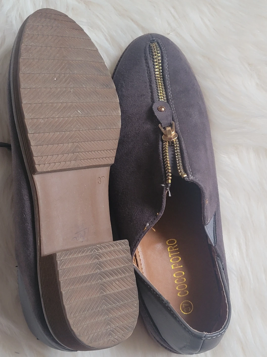 Buy & SellCOCO POTRO Grey Suede Zip Loafers Size 37COCO POTRO Grey Suede Zip Loafers Size 37$10These COCO POTRO loafers are a size 37. They are made of grey suede with gold zippers. The soles are brown rubber.WHERE TO MEETCheck LocationView MapSELLERMangEllerslie201 review0 chats·0 favorites·4 viewsSEND CHAT TO SELLERHi Mang! I’m interested in your listing.Hi Mang! I’m interested in your listing.Get the Karrot app to chatSign In to chat