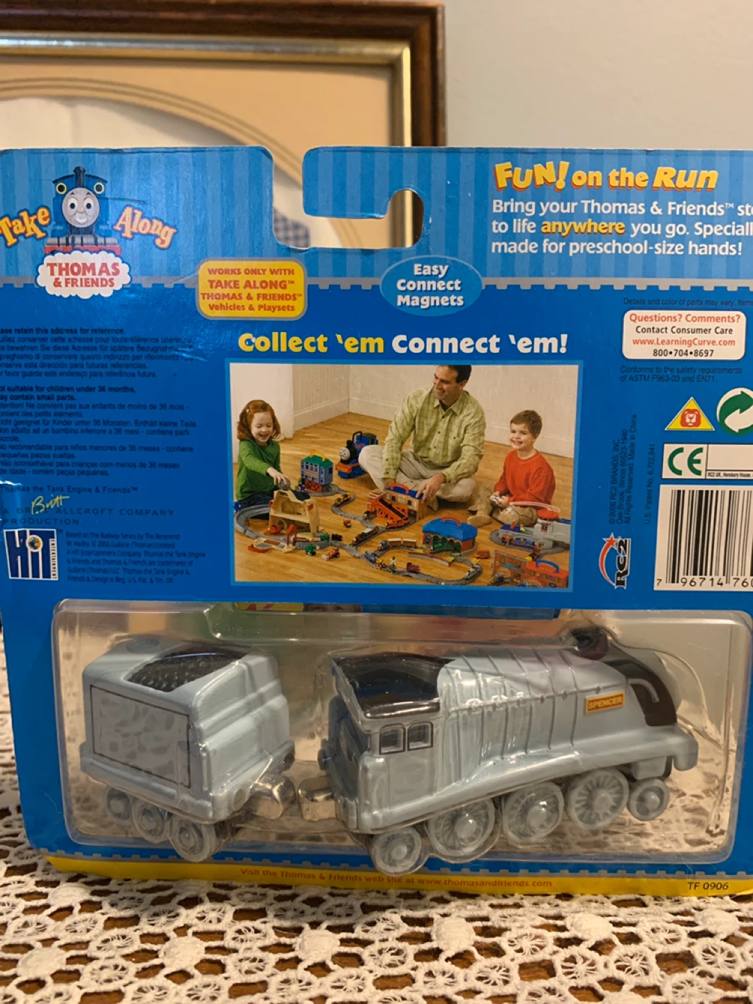 Brand new Thomas & Friends Spencer train is a die-cast metal vehicle. It's designed for preschoolers and works with Take Along Thomas & Friends vehicles and playsets. Magnets connect the pieces.