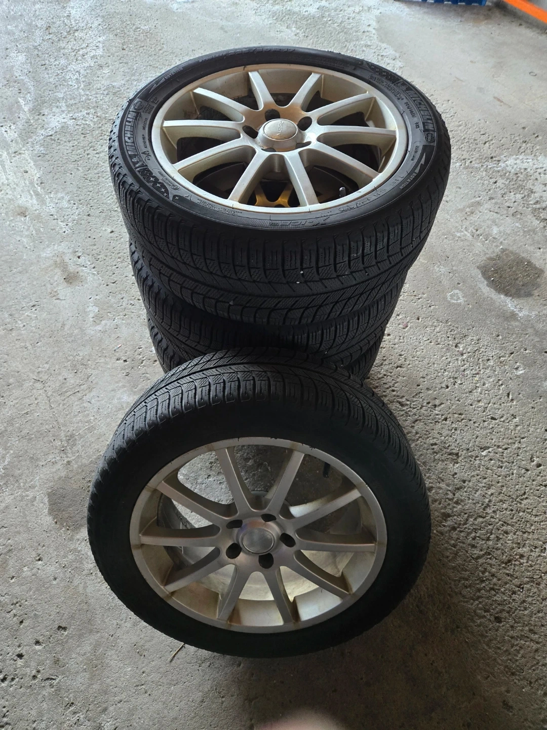 Selling a set of four Michelin winter tires (225x50xR17) mounted on silver alloy rims in good condition.