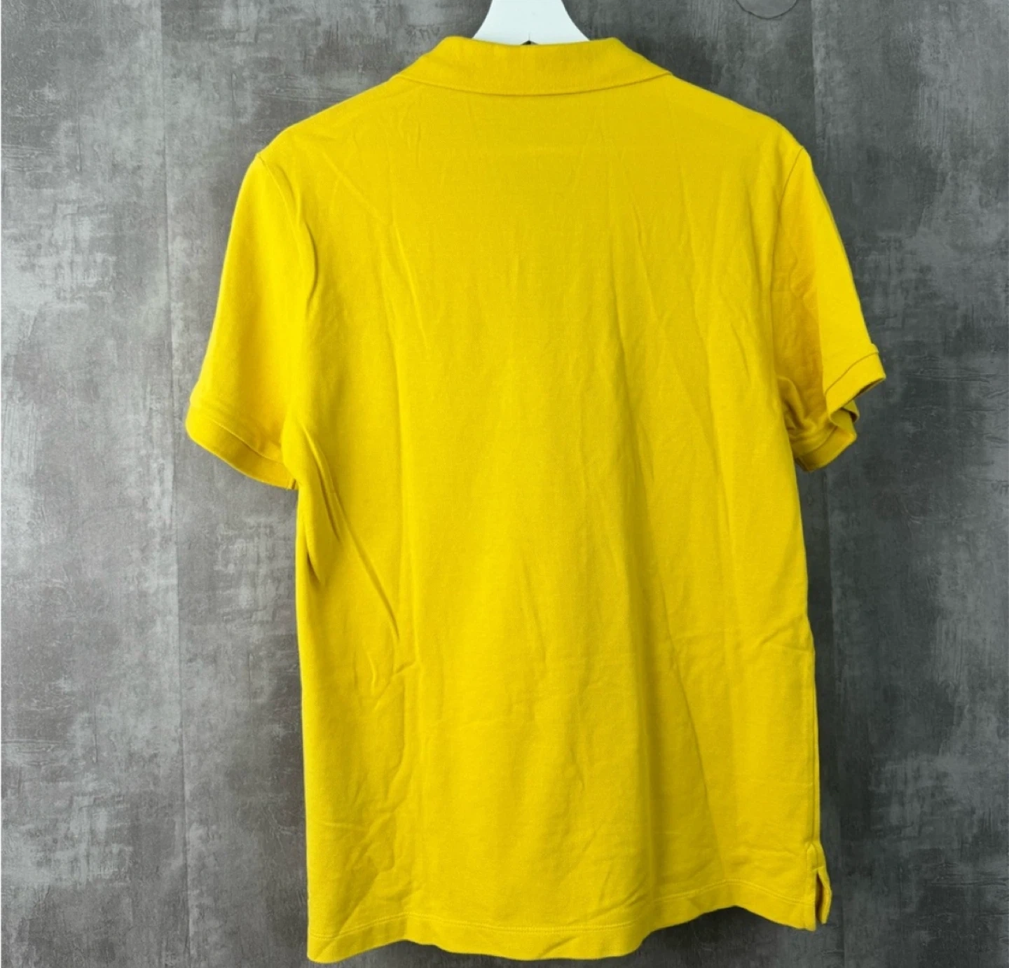 Burberry Brit polo shirt in a bright yellow. It's made from 100% cotton for comfort. This shirt features the iconic Burberry Equestrian Knight emblem subtly embroidered on the chest. Size medium.u
