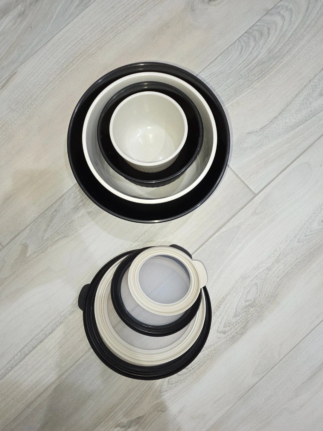 Thyme & Table 8-Piece Nesting Mixing Bowl Set in Black and Cream.
