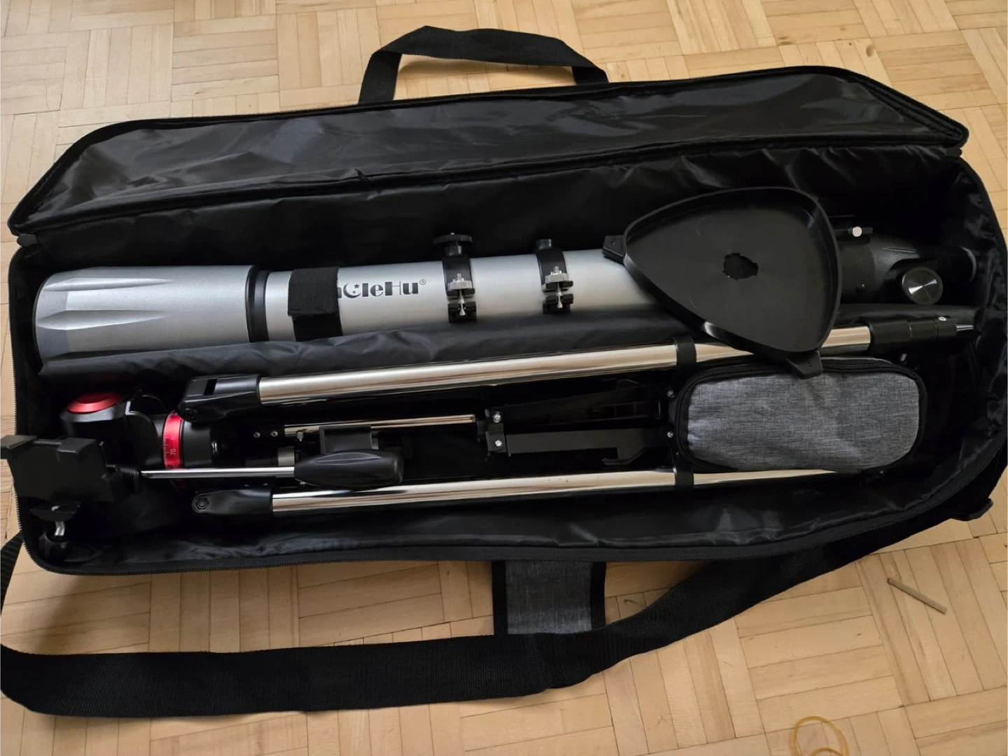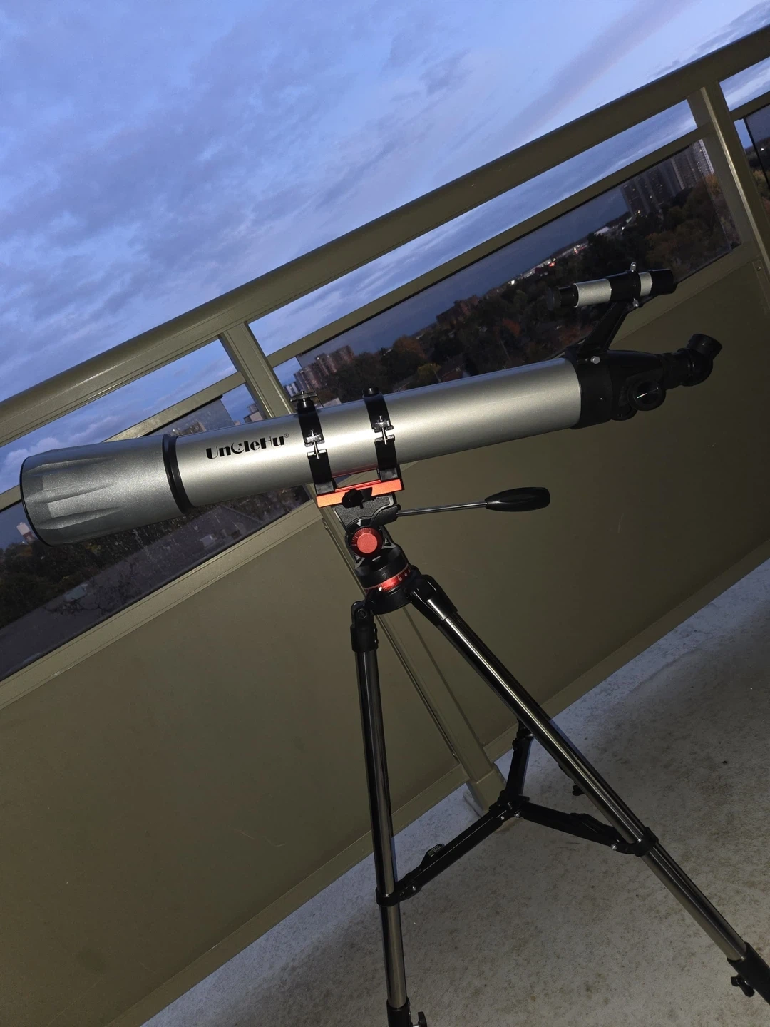 Selling an UncleHu telescope that comes with a tripod and various accessories! It's in great shape and ready for some stargazing. The telescope comes with its original carrying bag and instruction manual.