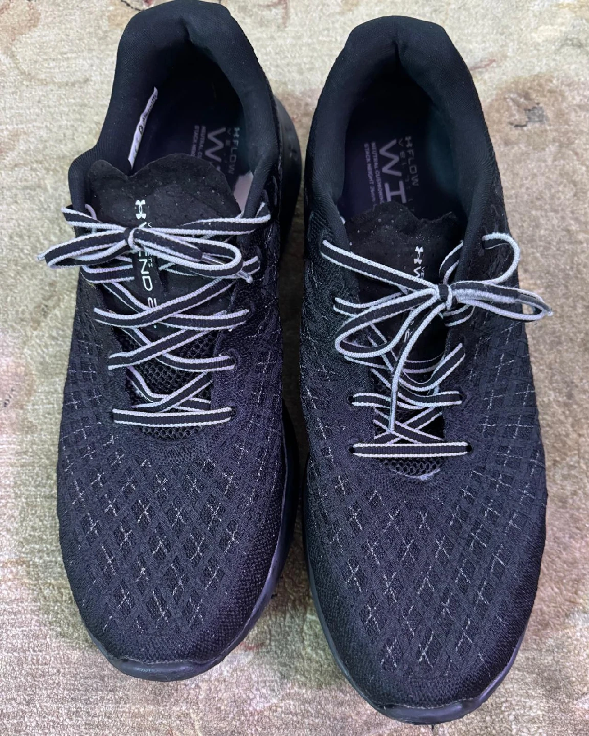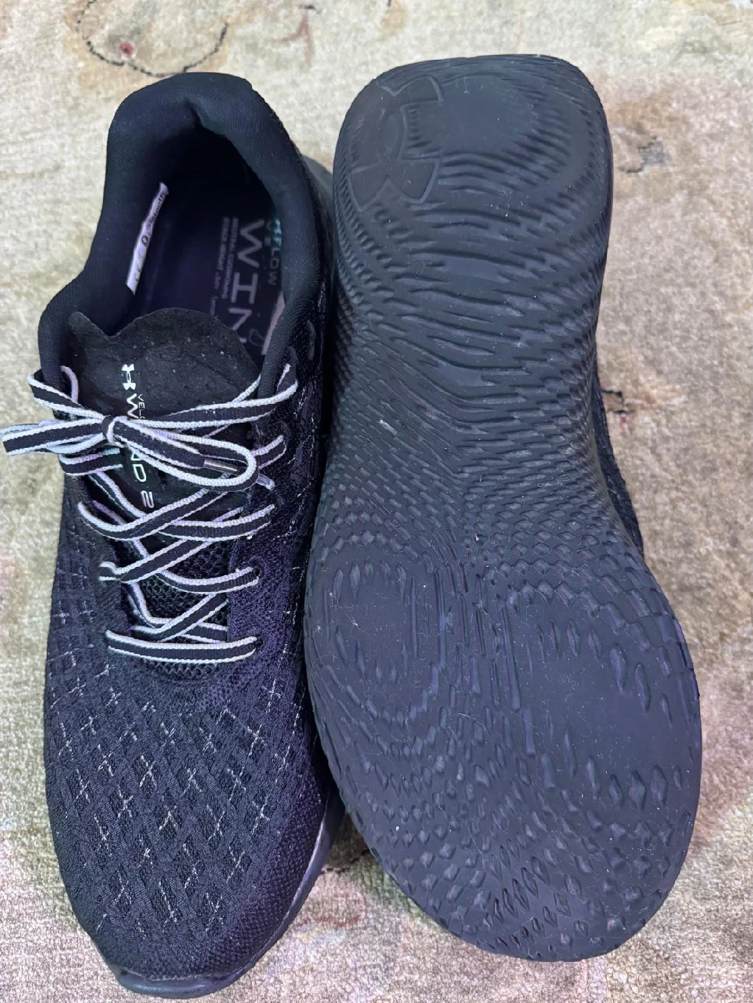 5Selling a pair of Under Armour Flow Velociti Wind 2 running shoes! These are great for neutral cushioning and have a stack height of 8mm. They are black with white laces and the Under Armour logo on the side. Perfect for running or everyday wear!
