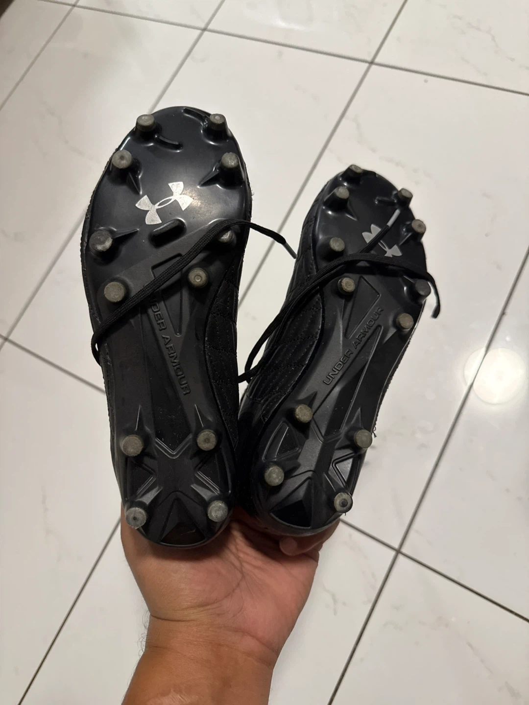 10Selling a pair of Under Armour soccer cleats in black. They're in good condition and ready for the field