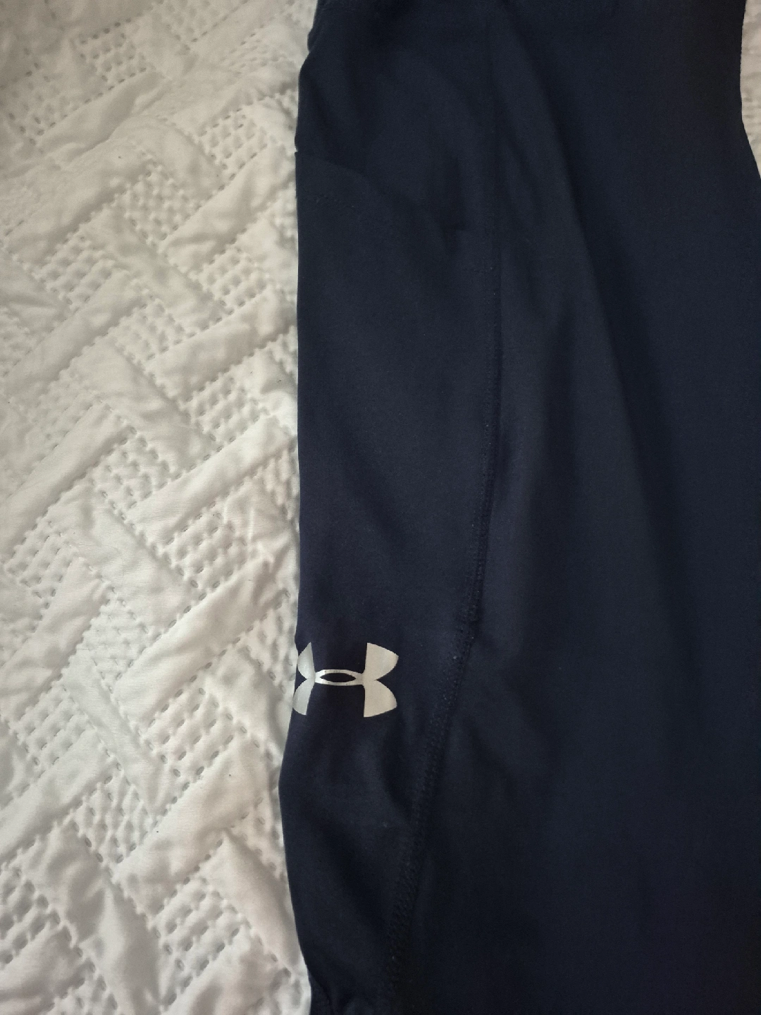 Selling a pair of new non authentic under Armour navy leggings with side pocket.