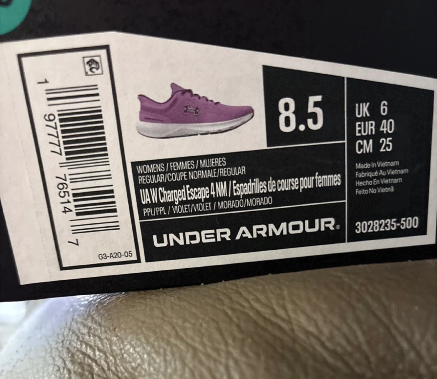 60Selling a pair of Under Armour Women's Charged Escape 4 NM running shoes in size 8.5. They are in great condition and come with the original box!