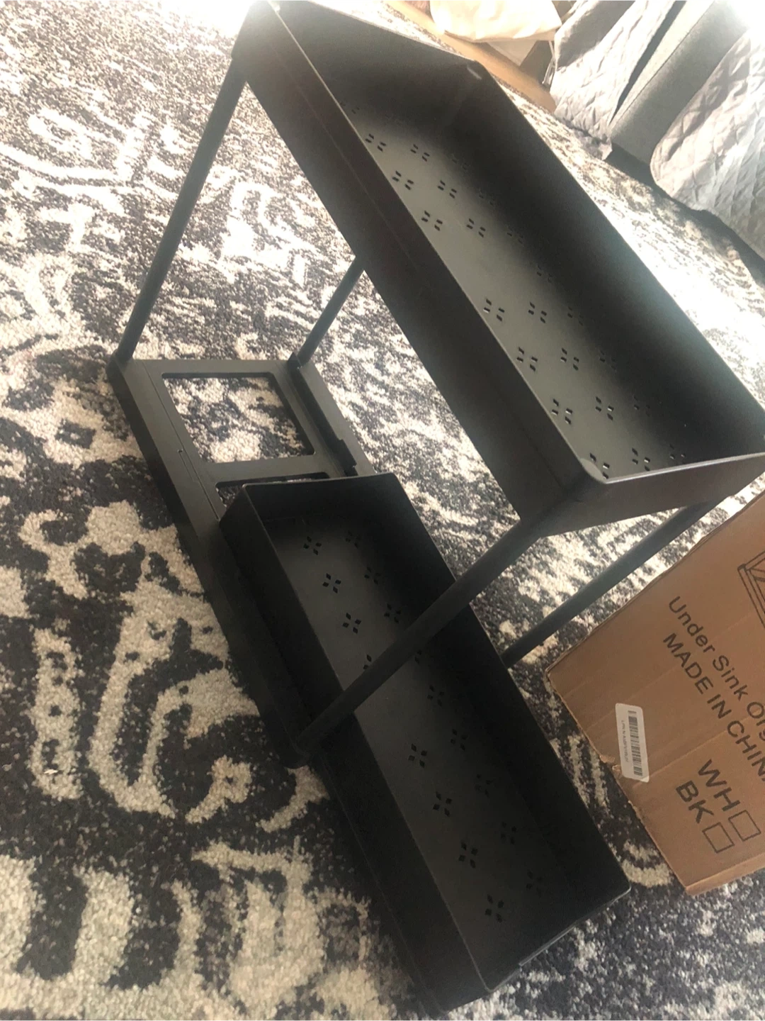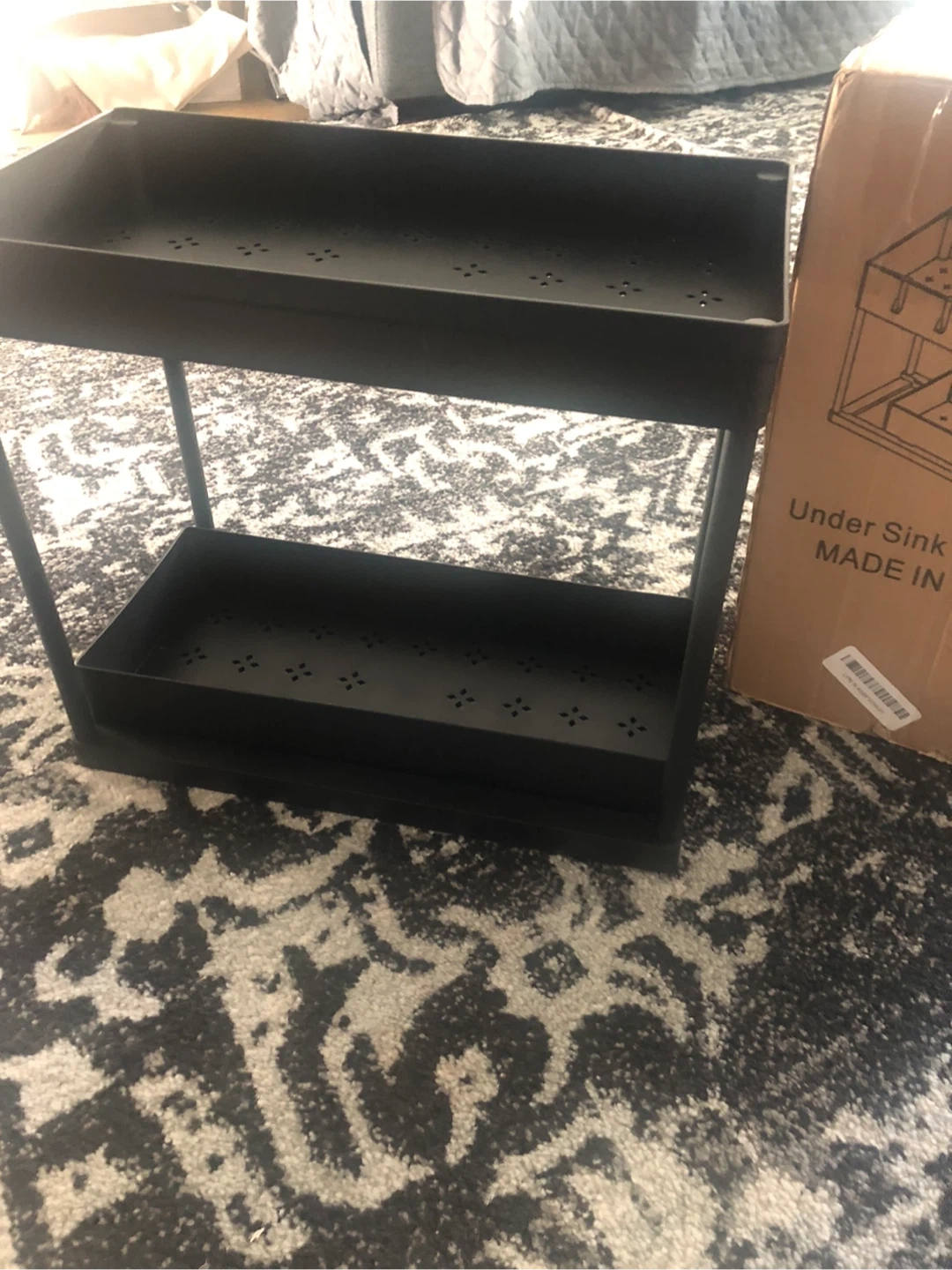 Selling a brand new, still-in-box under sink organizer! It's black and ready to help you maximize your storage space under the sink. Perfect for keeping your cleaning supplies and other essentials neat and tidy