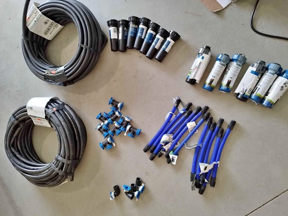 10New never installed sprinkler system. Includes everything in the pics: 6 gear drive pop up heads, 7 spray heads, 200 feet connecting hose + other connectors. Comes with Wifi smart timer controller, you can water your grass or plants on a click from your phone or schedule it as per weather conditions. Pickup Beaumont or Summerside SW