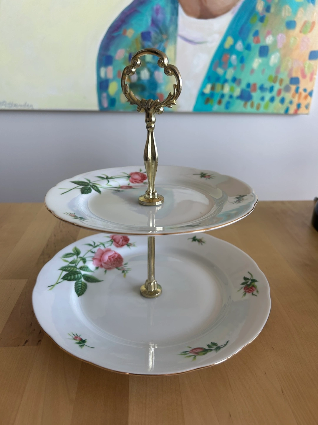 Vintage Two-tiered Rose Pattern Dessert Stand