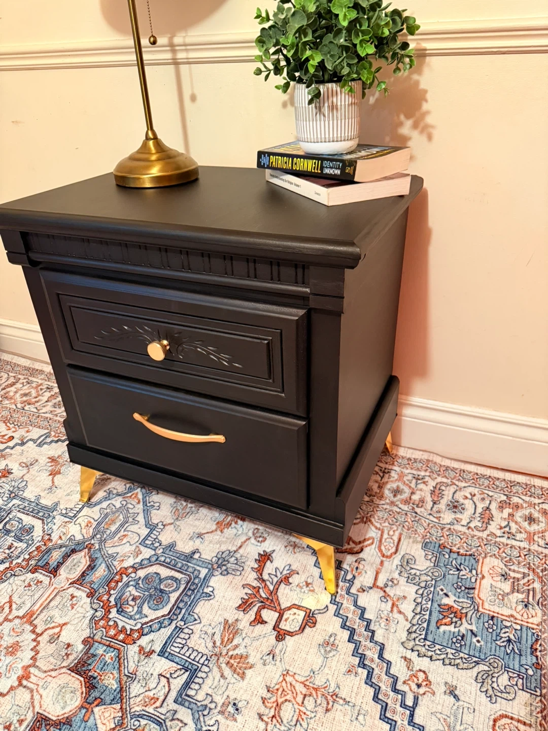 Black Painted Nightstand with Gold Accents