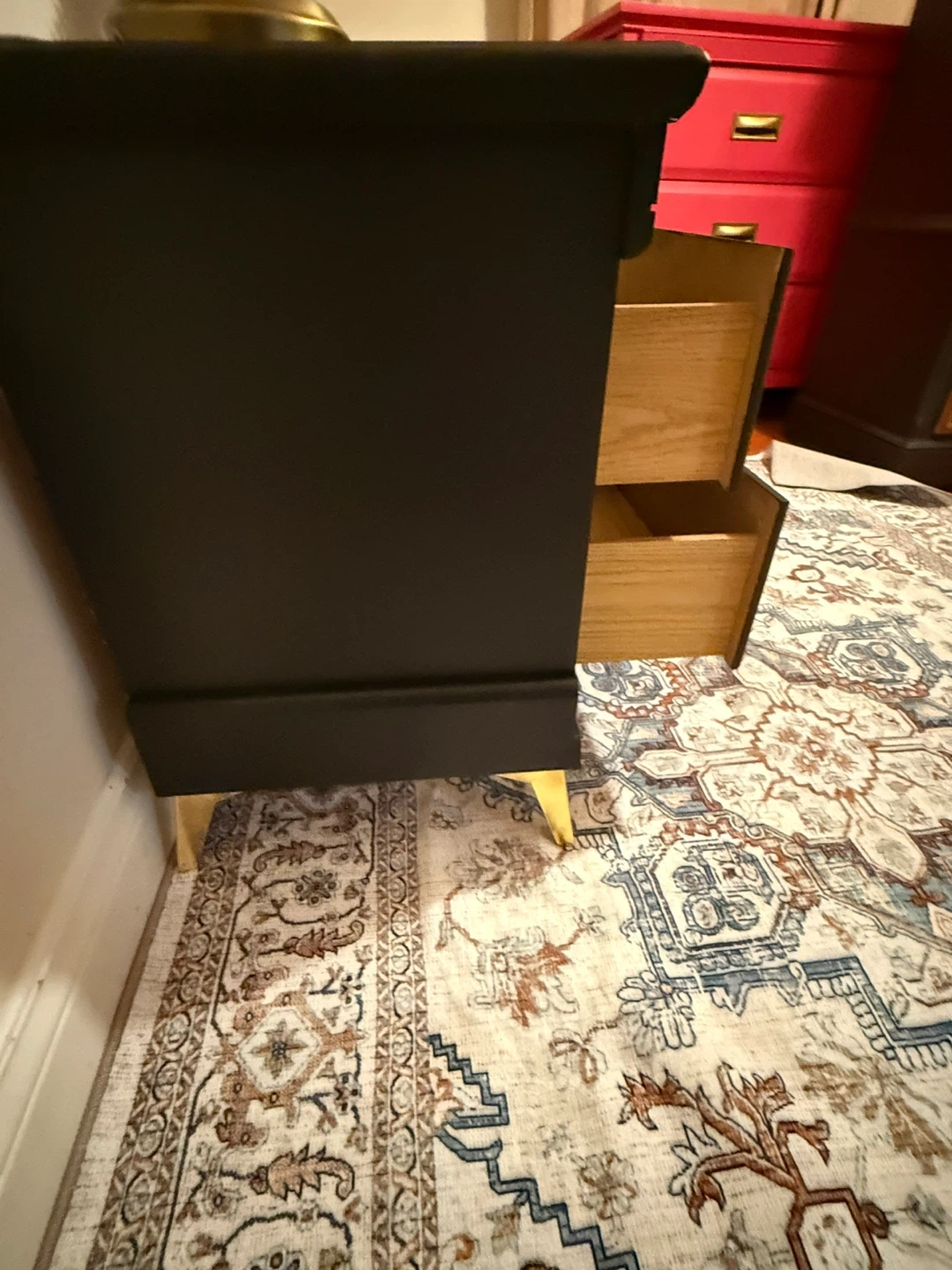 Black Painted Nightstand with Gold Accents