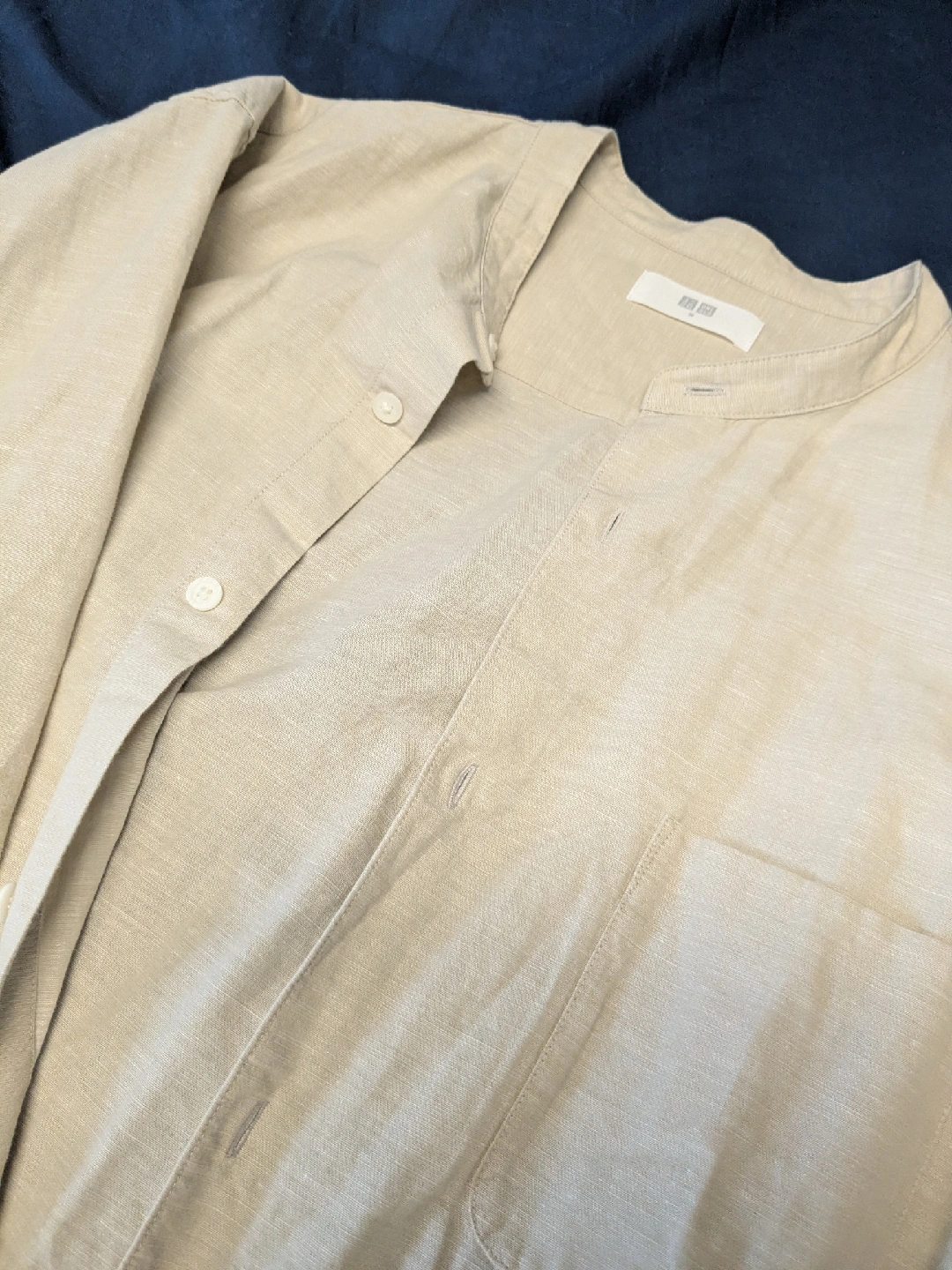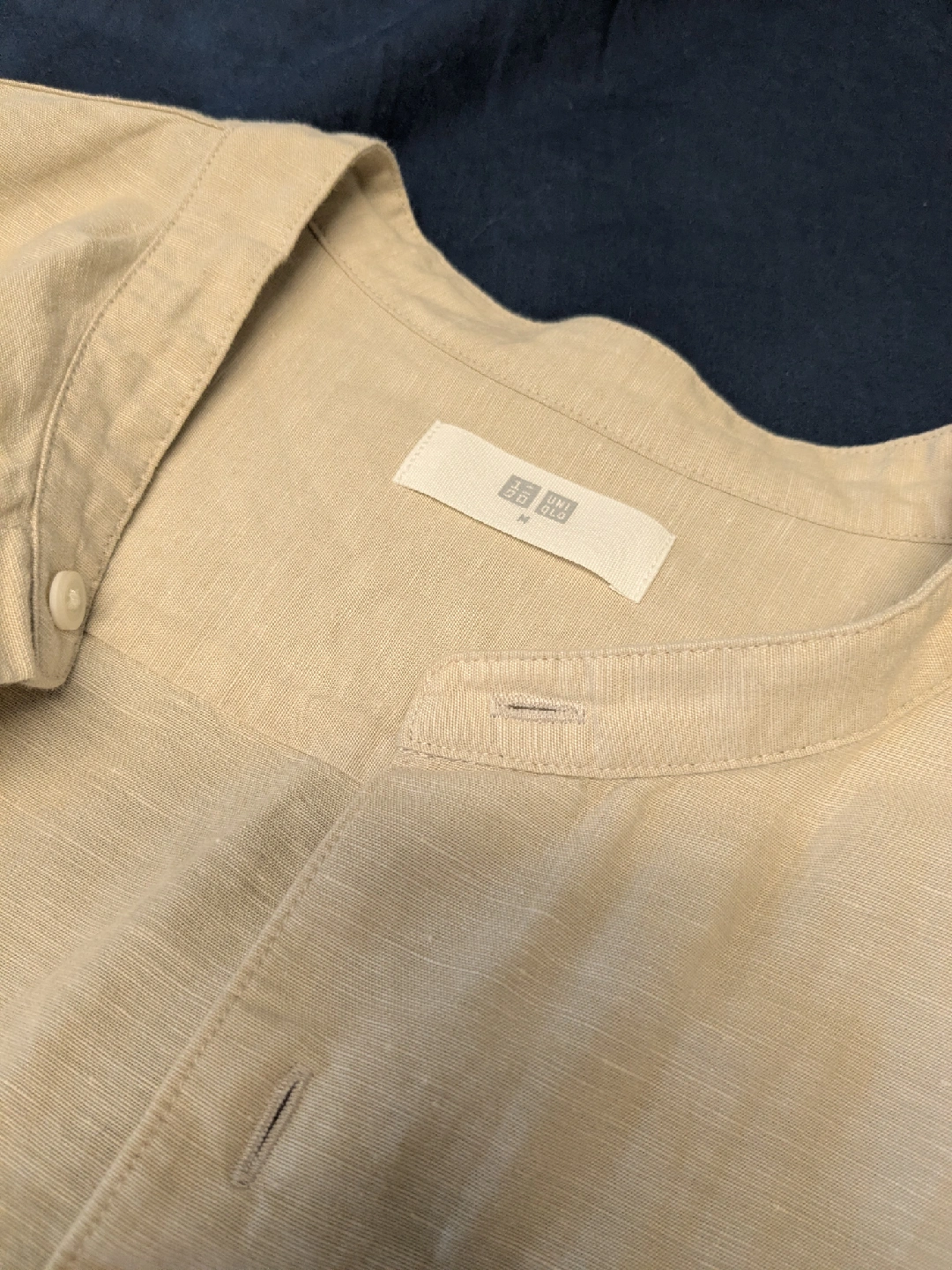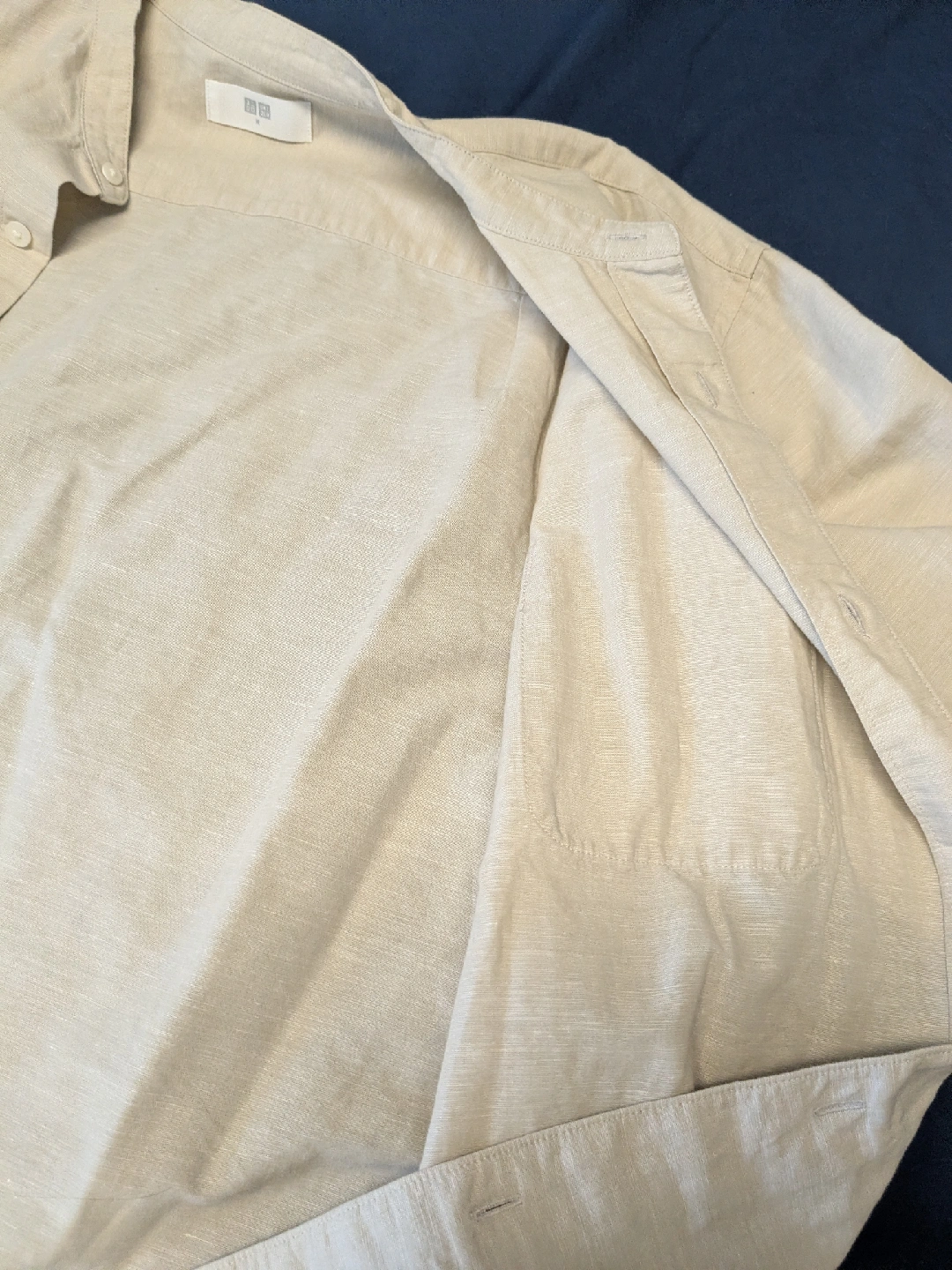 Selling a Uniqlo linen shirt in size medium. It's a lovely beige colour and in great condition. Perfect for a casual, breezy look!