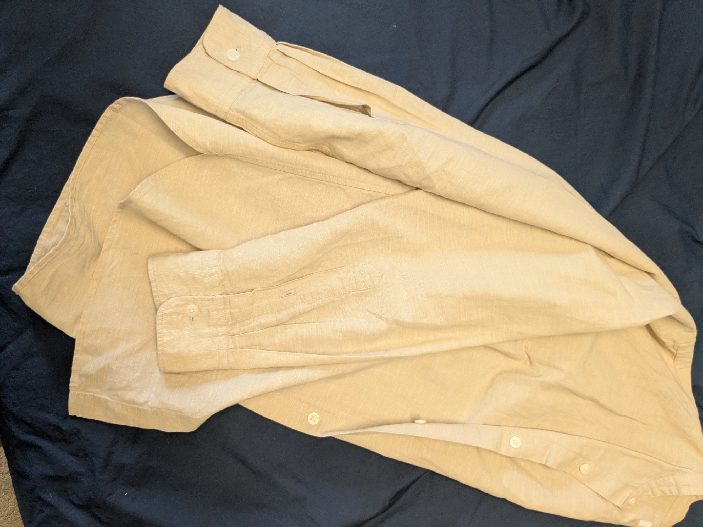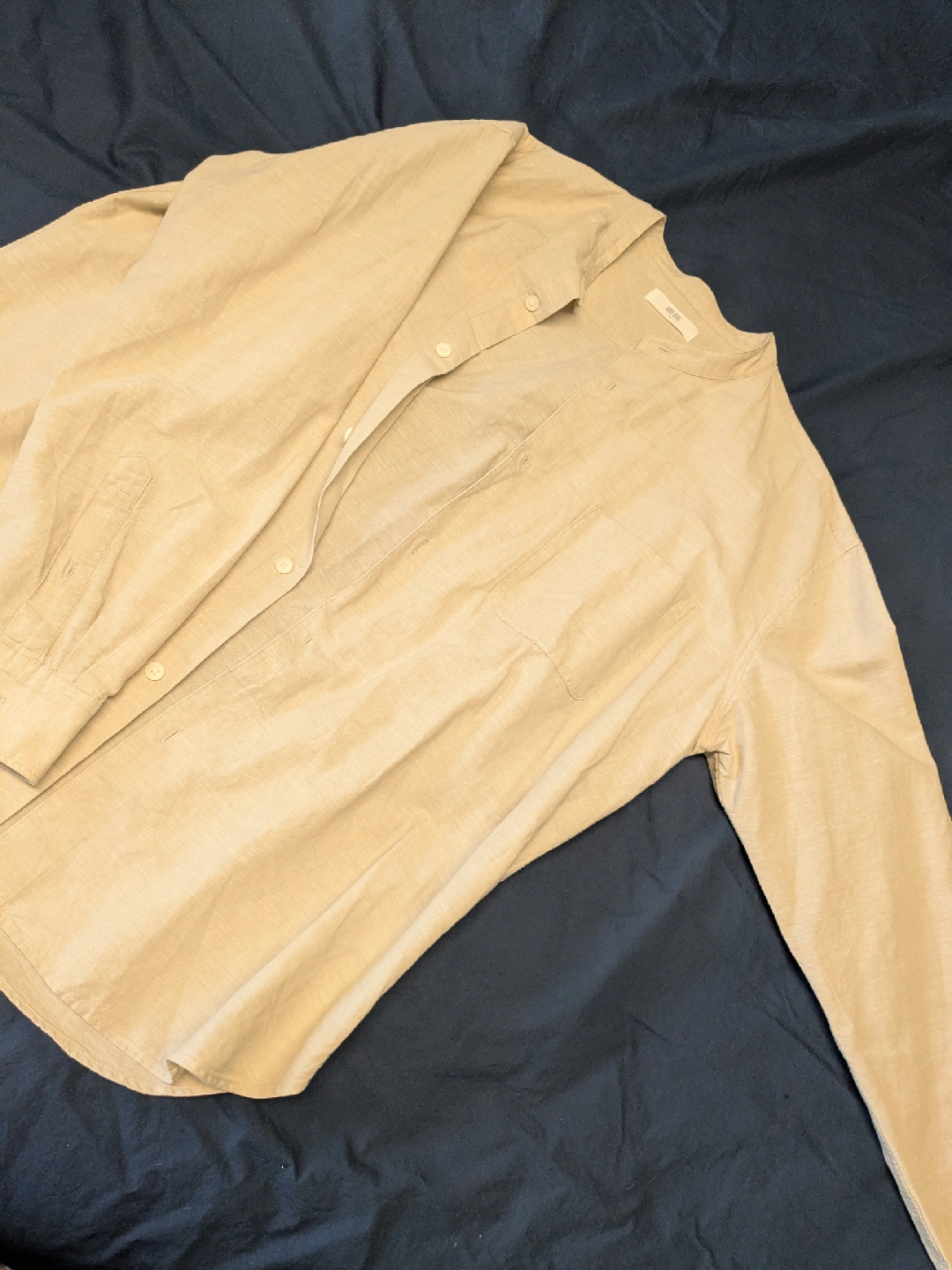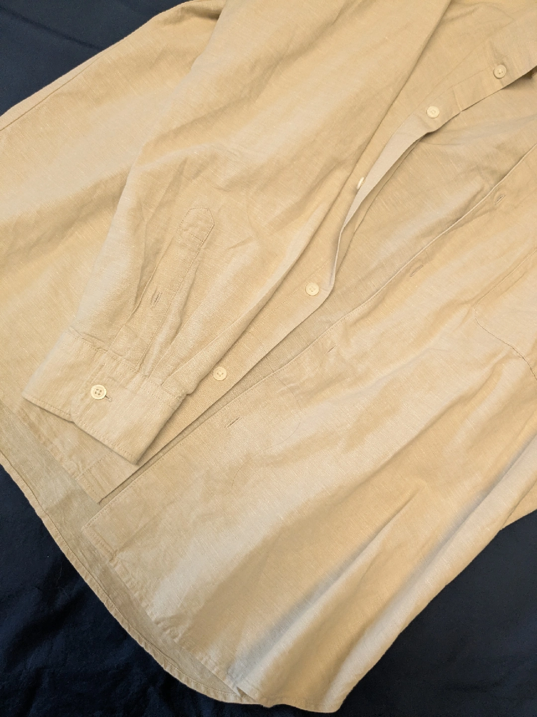 Selling a Uniqlo linen shirt in size medium. It's a lovely beige colour and in great condition. Perfect for a casual, breezy look!