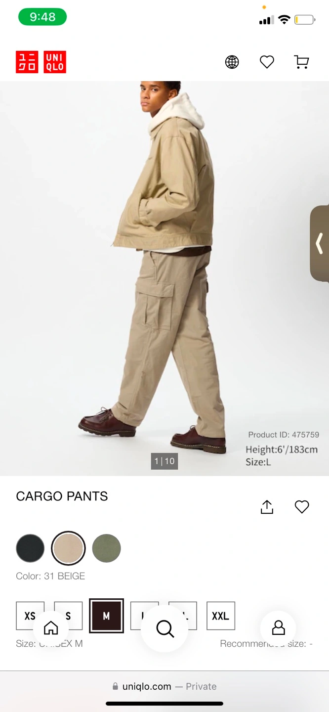 270Uniqlo Cargo Pants Beige and Green $30 each or $60 for both Size: Small (Can fit Medium) Conditon: 9/10 Worn once