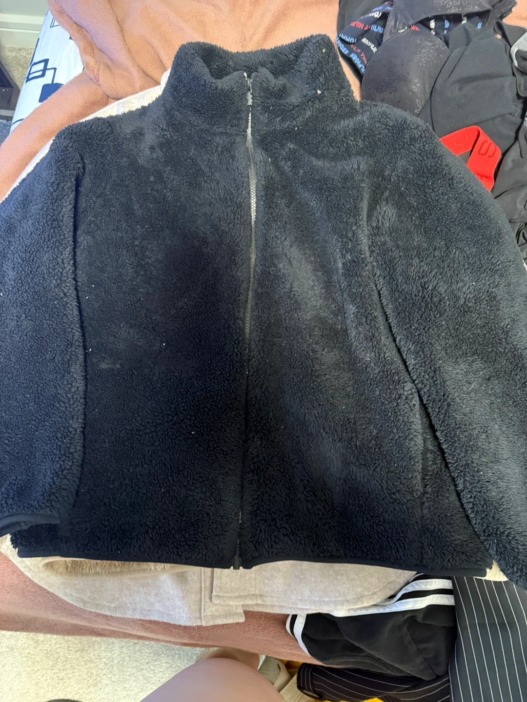 65Here's a cozy black fleece jacket from Uniqlo! It's super soft and warm, perfect for layering during the cooler months. It's in great condition and ready for a new home! $30 each Black or beige