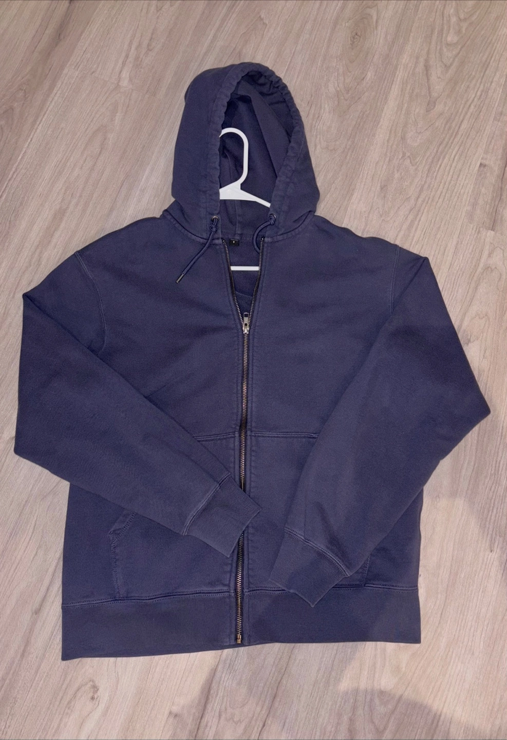 Selling a cozy Uniqlo full-zip hoodie! It's a lovely modern blue colour and a size M. Perfect for layering or just lounging around - great boyfriend fit. It's in great condition, only worn about 3 times. Purchased it around $59 pre-tax.