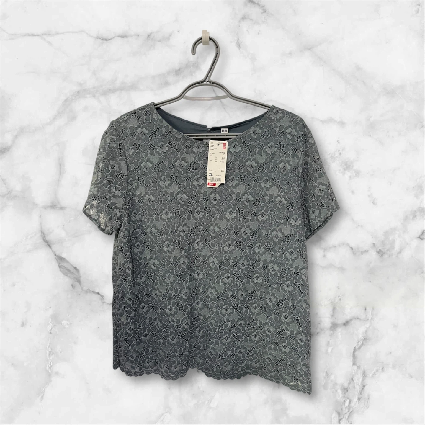 Selling a beautiful lace short sleeve blouse from Uniqlo! It's a size XL and features a delicate floral lace pattern all over. Perfect for dressing up or down, this blouse is a versatile addition to any wardrobe!