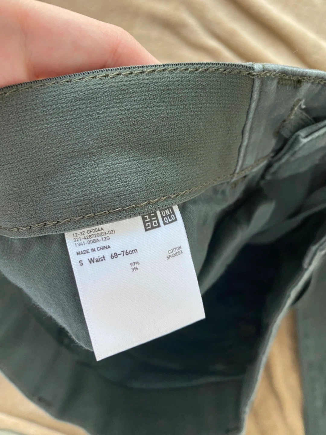 These are a pair of Uniqlo pants in size small. They are made of 97% cotton and 3% spandex. Waist 68-76cm Worn only once. RFS: too big for me