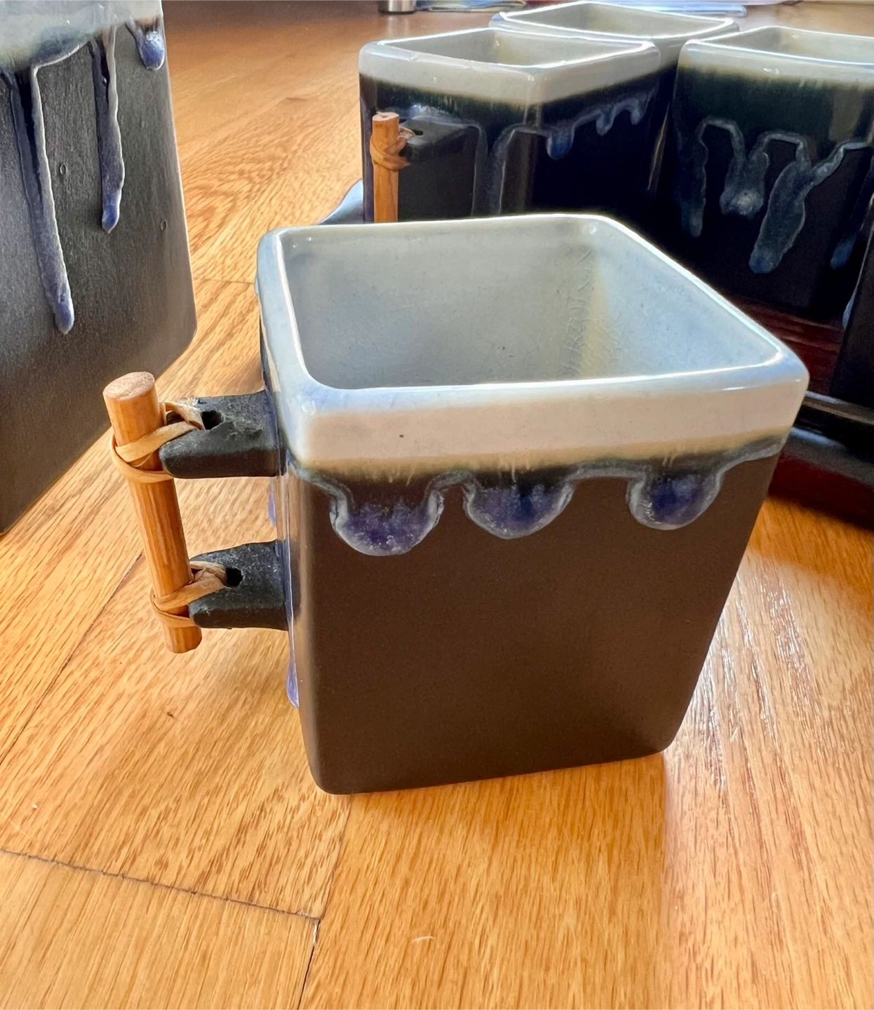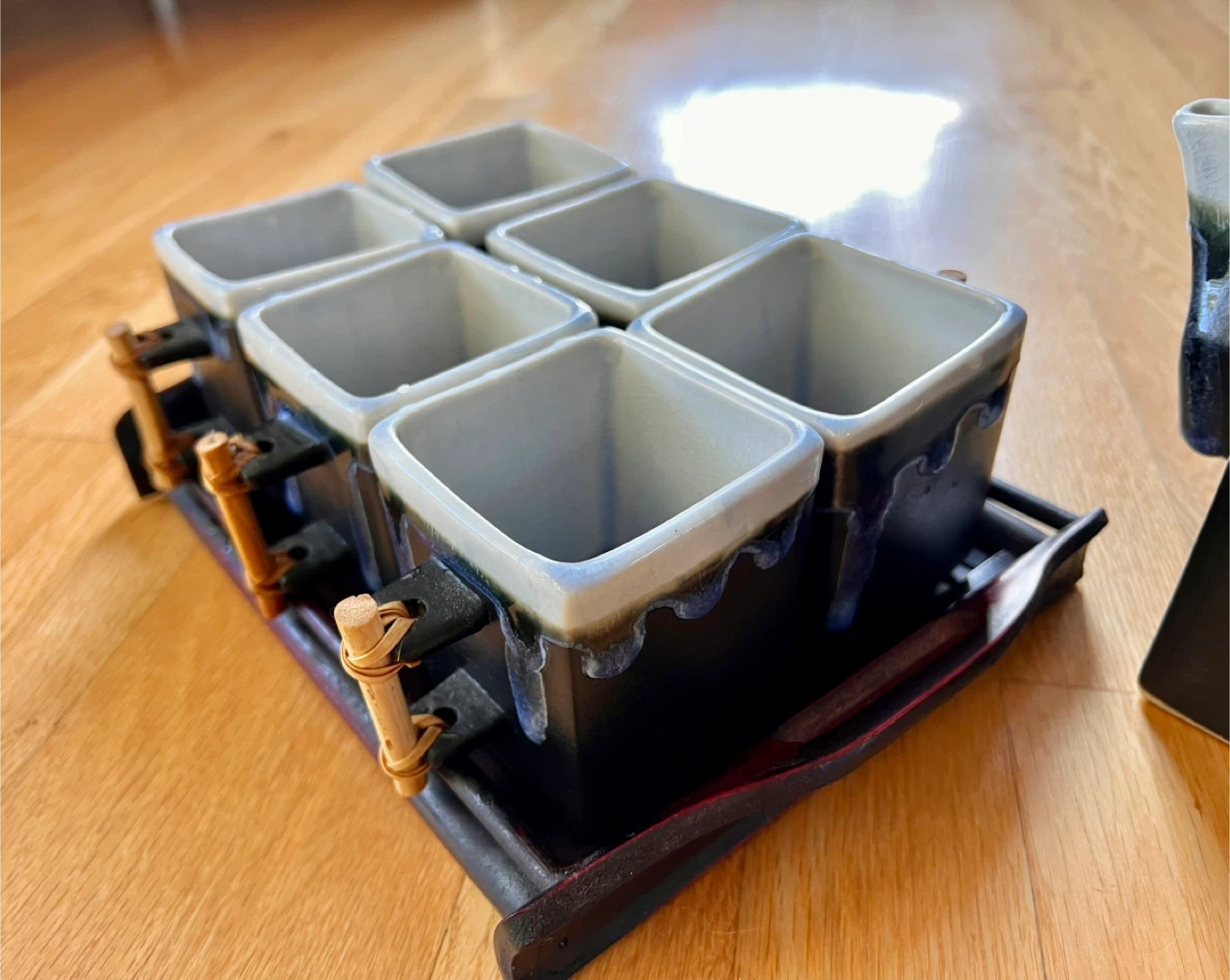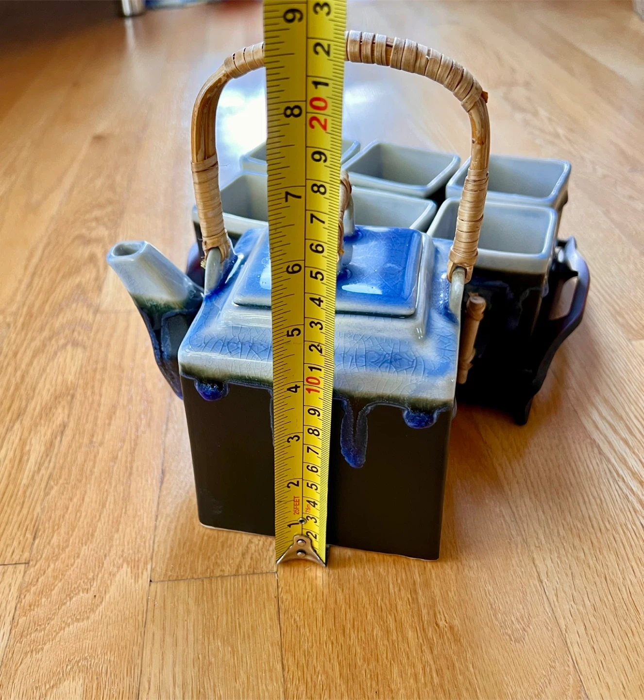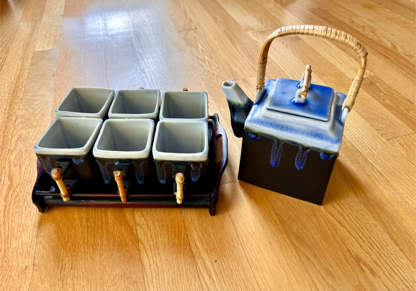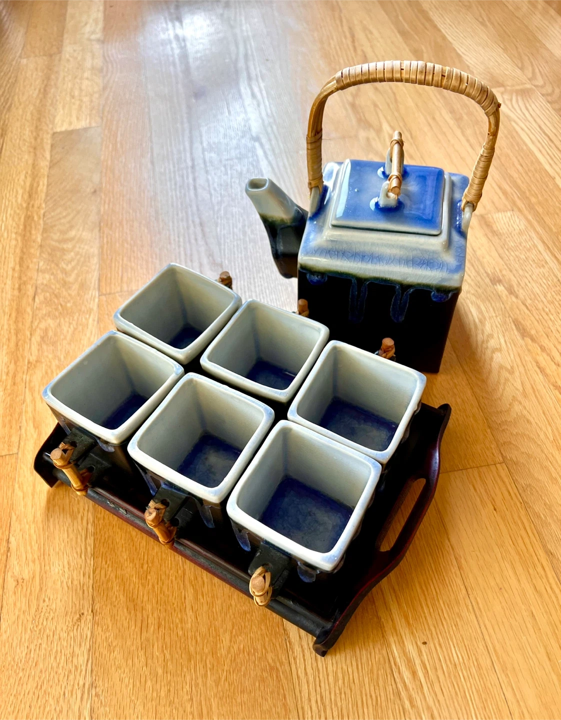 10Unique Japanese Tea Set with crackle ceramic- 6 square tea cups & tea pot w/ bamboo handlers. CASH only. Pickup in capilano area.