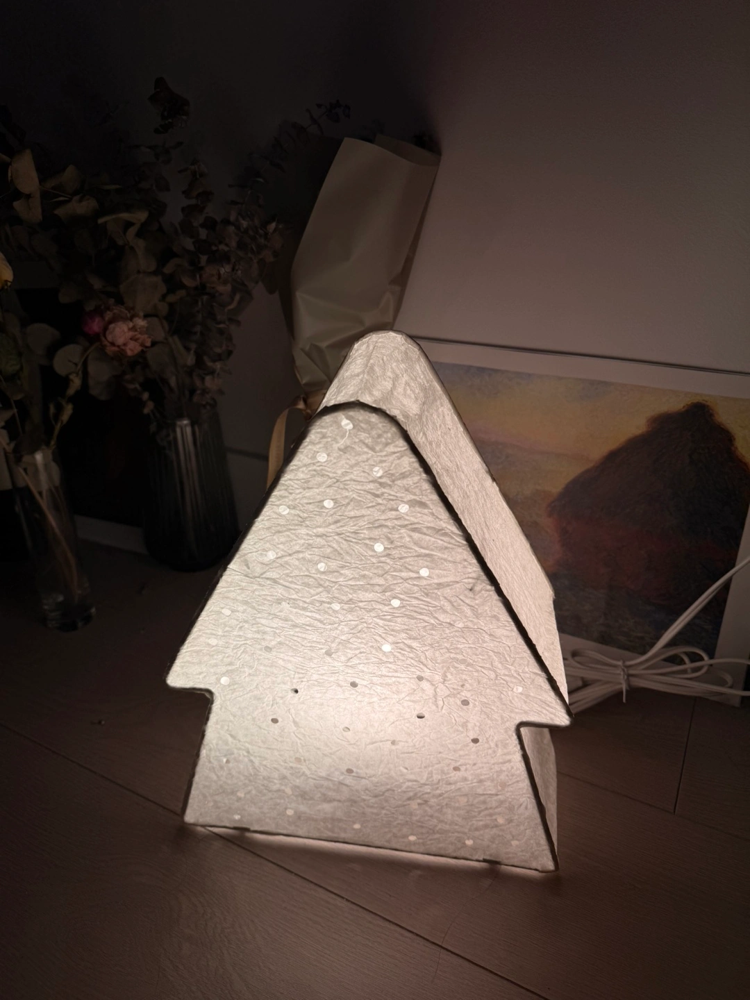 80Adorable paper lamp, illuminates softly. Small white dots throughout. Cord and warm tone light bulb included.