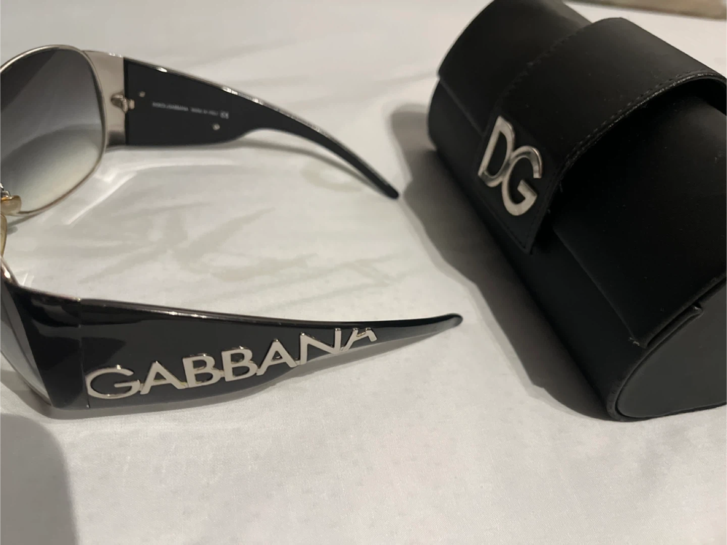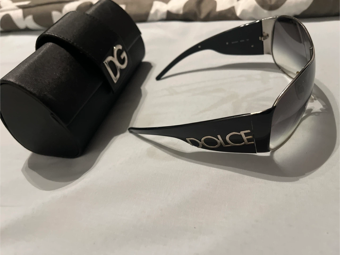 34Selling a pair of Dolce & Gabbana sunglasses! They come with their original case, which has the D&G logo on it. Stylish and in good condition, ready for a new owner