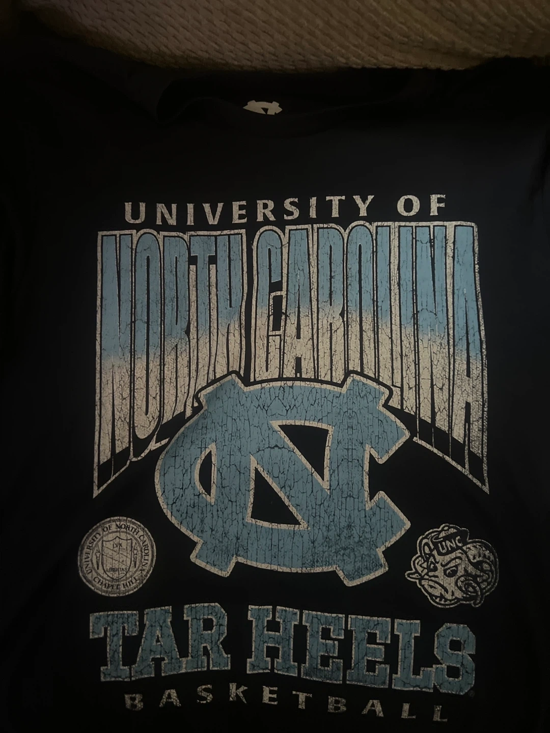 Selling a University of North Carolina Tar Heels t-shirt. It features the UNC logo and 'Tar Heels Basketball' text. Great for any UNC fan!