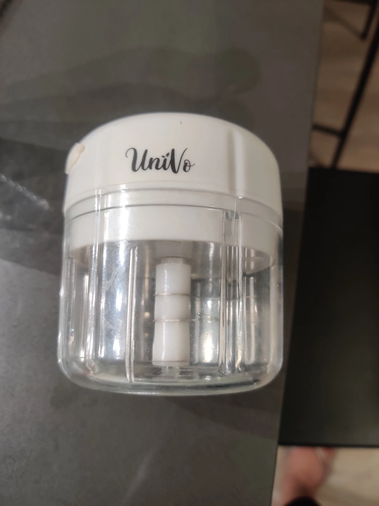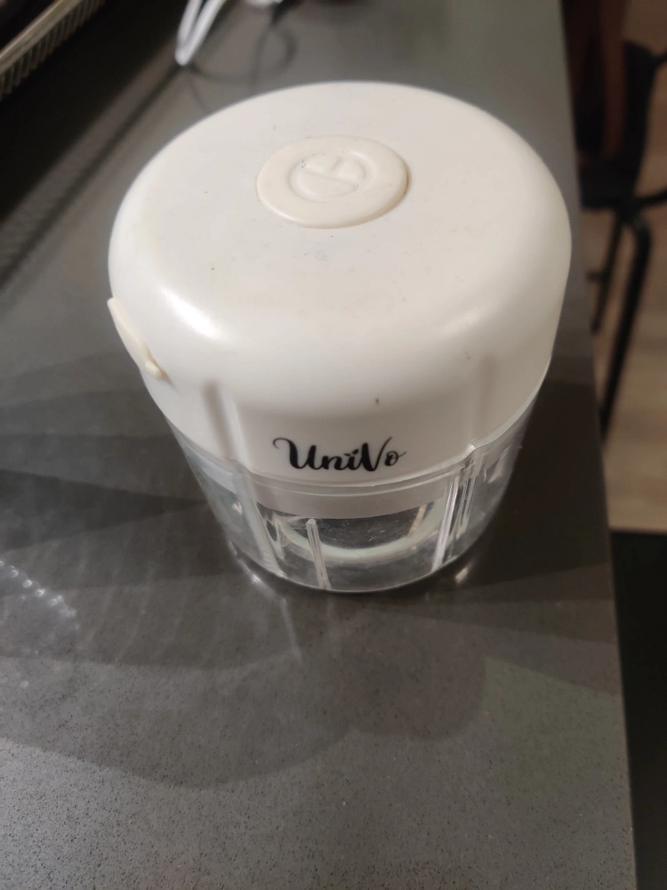 313Small manual food chopper. Great for chopping garlic, herbs, and other small ingredients. Compact and easy to use. Clean design.