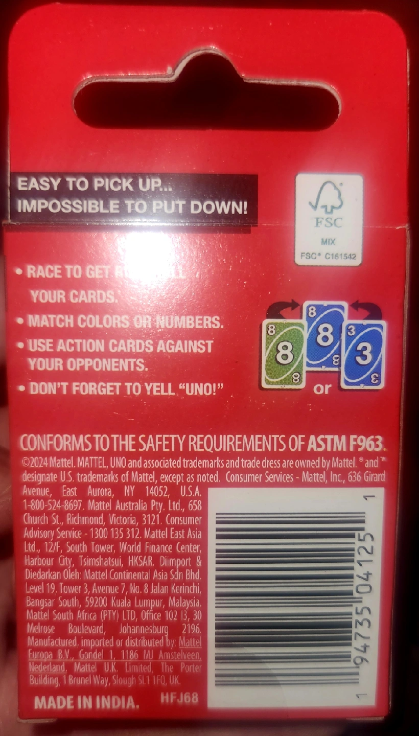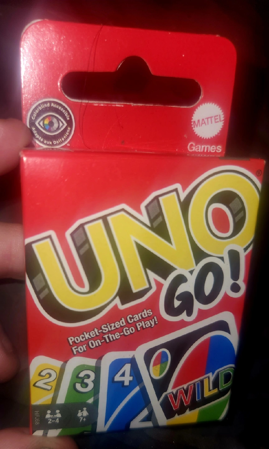 590Selling a brand new UNO GO! card game. It's pocket-sized, perfect for on-the-go play! Easy to pick up but impossible to put down. Race to get rid of your cards, match colours or numbers, and use action cards against your opponents. Don't forget to yell 'UNO!' Pick up Only.