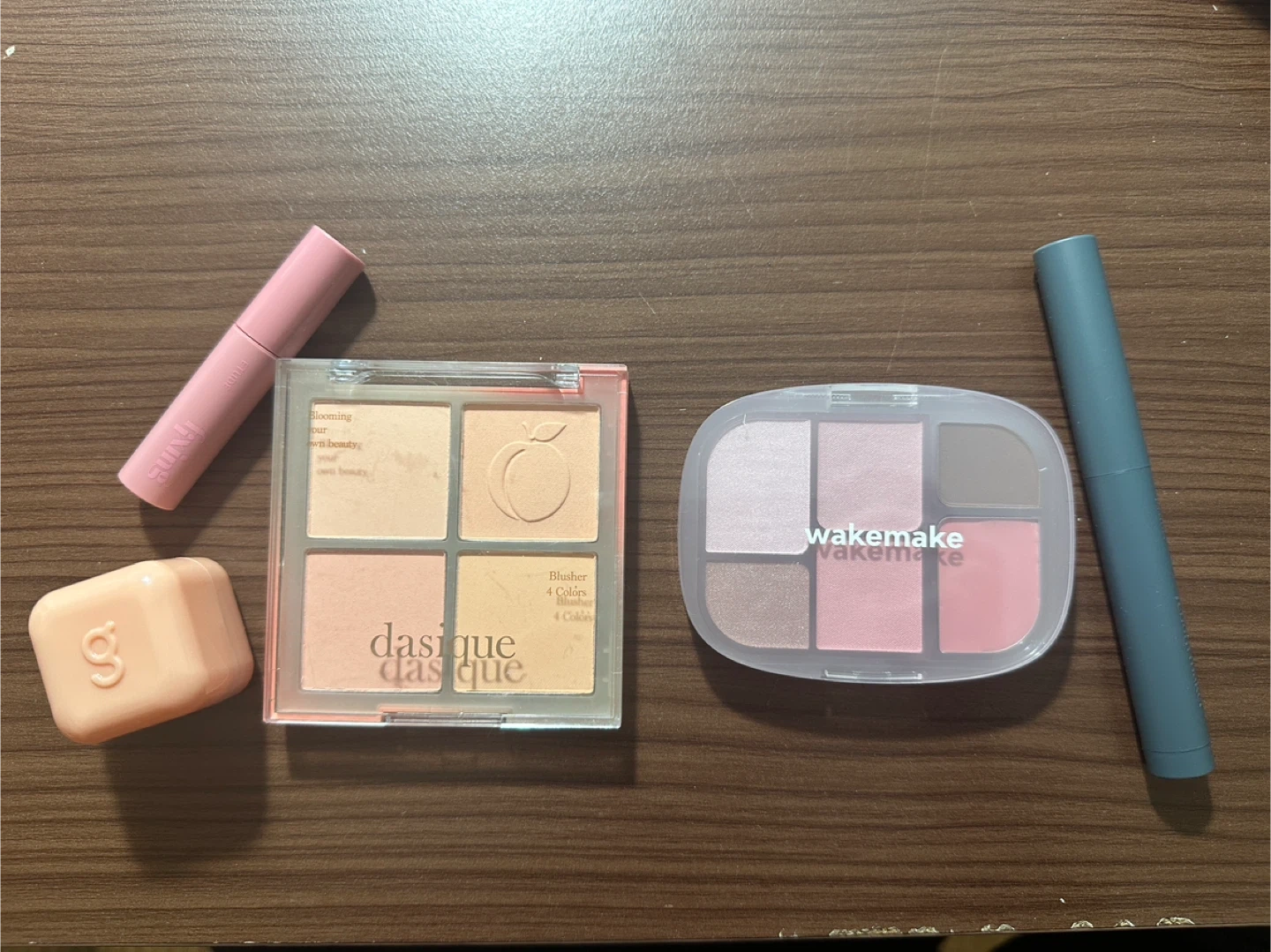 Selling a set of makeup items! Included are blush palette from Dasique, eyeshadows palette Wakemake, highlighter blush, lip gloss, and contour stick.