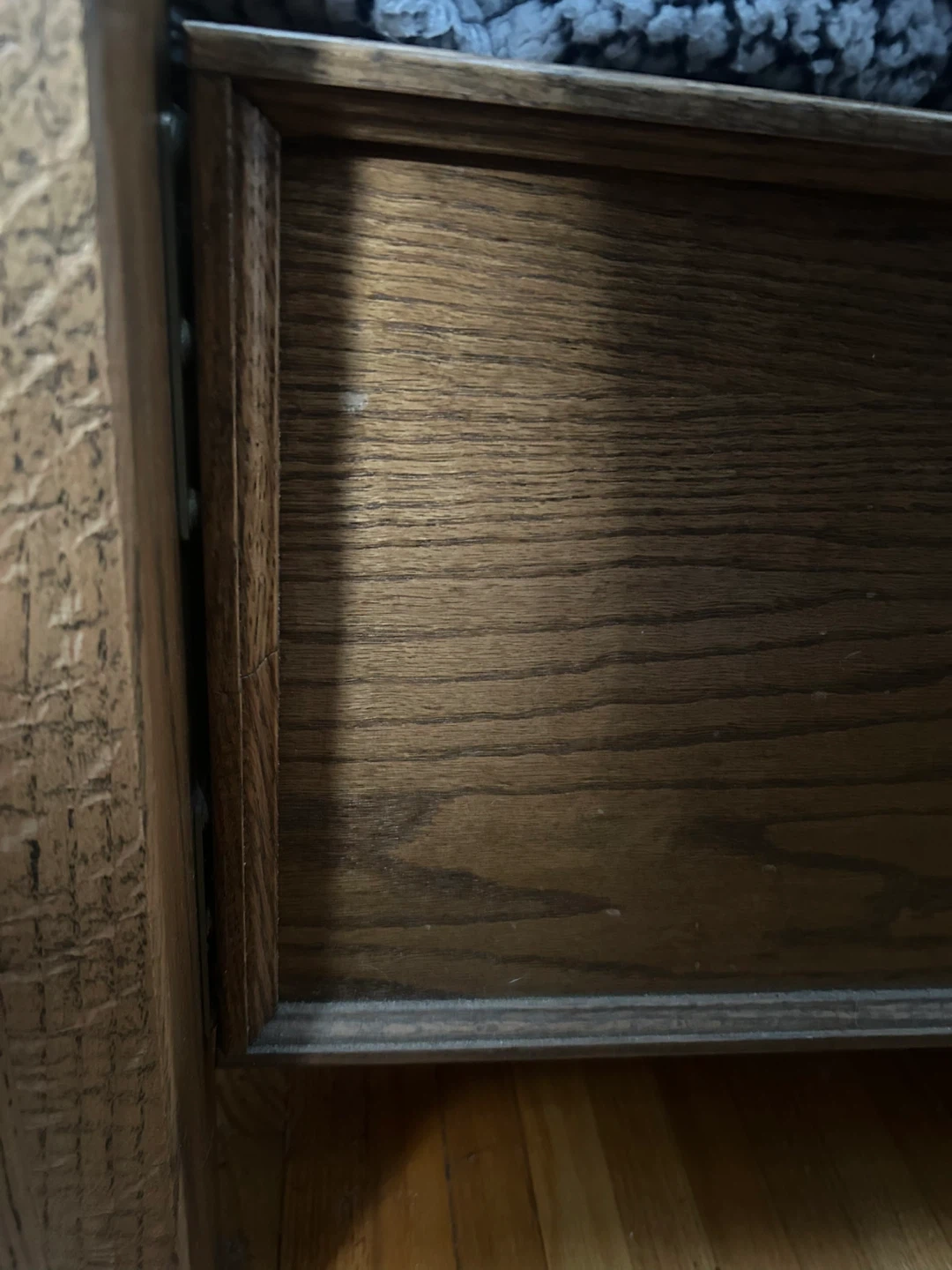 Solid wood bed frame with a warm oak finish. It features a classic design with paneled headboard and footboard. This sturdy bed frame is built to last!