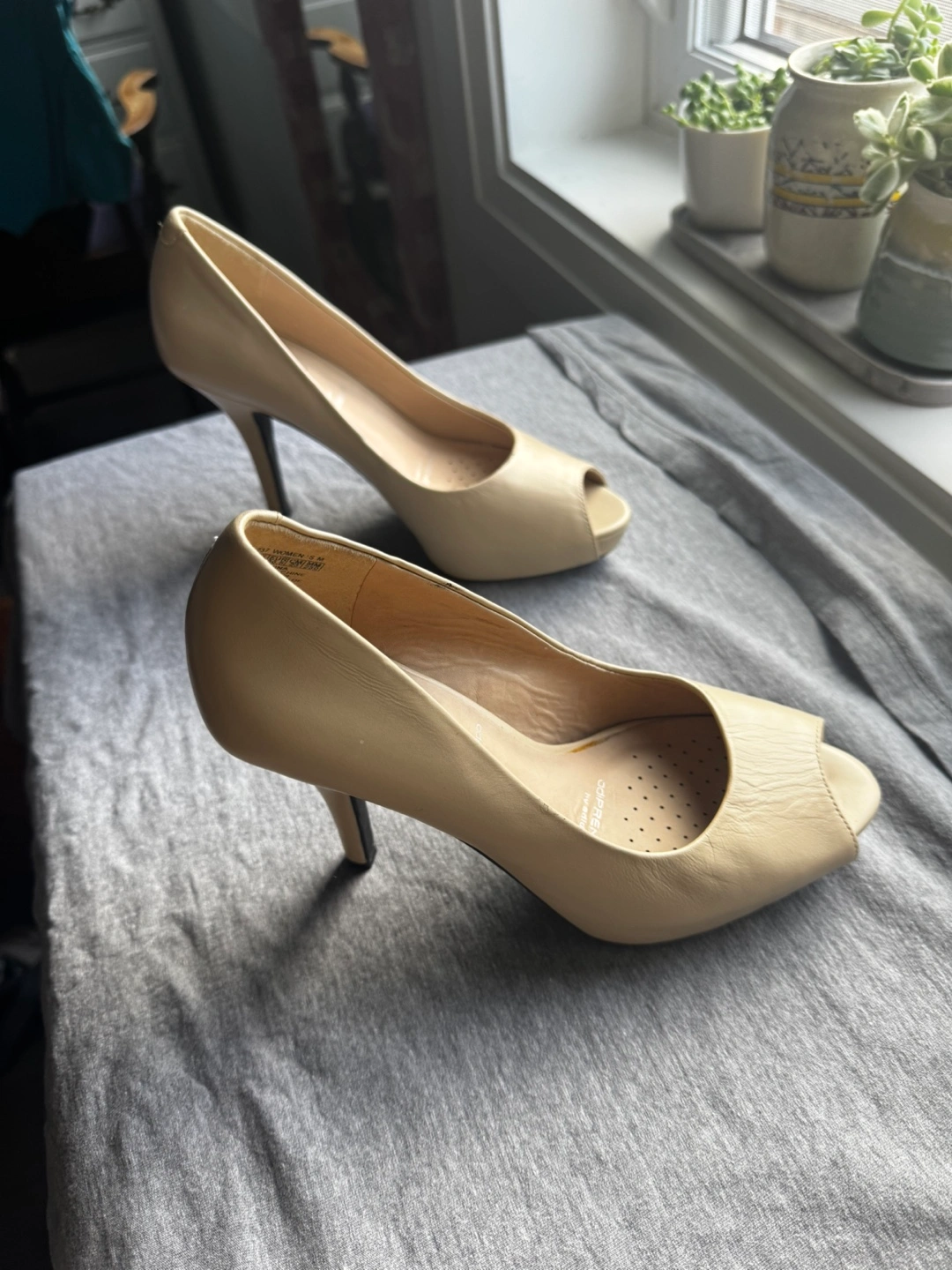 Ready to party? This pair is unused - Leather Rockport Adiprene by Adidas. Cream colour and 4 inches high heels. Size 6 (I am size 6.5 and they fit me). Beautiful shoes. Pick up at Jane and Dundas Street West (upper bloor west area). If the ad is up, it’s still available.