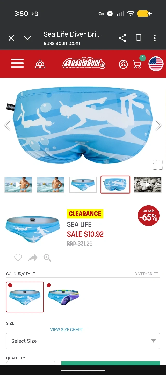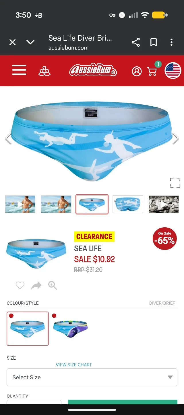 42Get ready to make a splash with these AussieBum Sea Life Diver Briefs! They're a fun and stylish choice for swimming or lounging by the pool. The cool blue color and unique diver design will definitely turn heads. Size large, perfect for a comfortable fit.