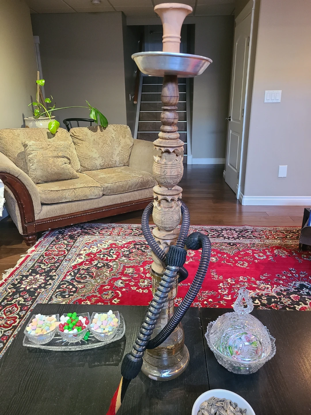 Selling a wooden hookah that produces an amazing, smooth smoke. Everything shown in the picture is included.