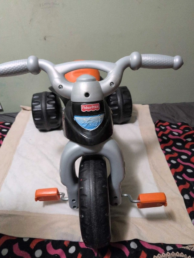 Selling a Fisher-Price Harley-Davidson Lights and Sounds Tricycle. This used tricycle features sturdy construction and a cool Harley-Davidson design with lights and sounds. It's in good used condition with some normal wear and tear. Sure to bring a smile to your little one's face! Priced at $25. If the ad is still up, it's still available!