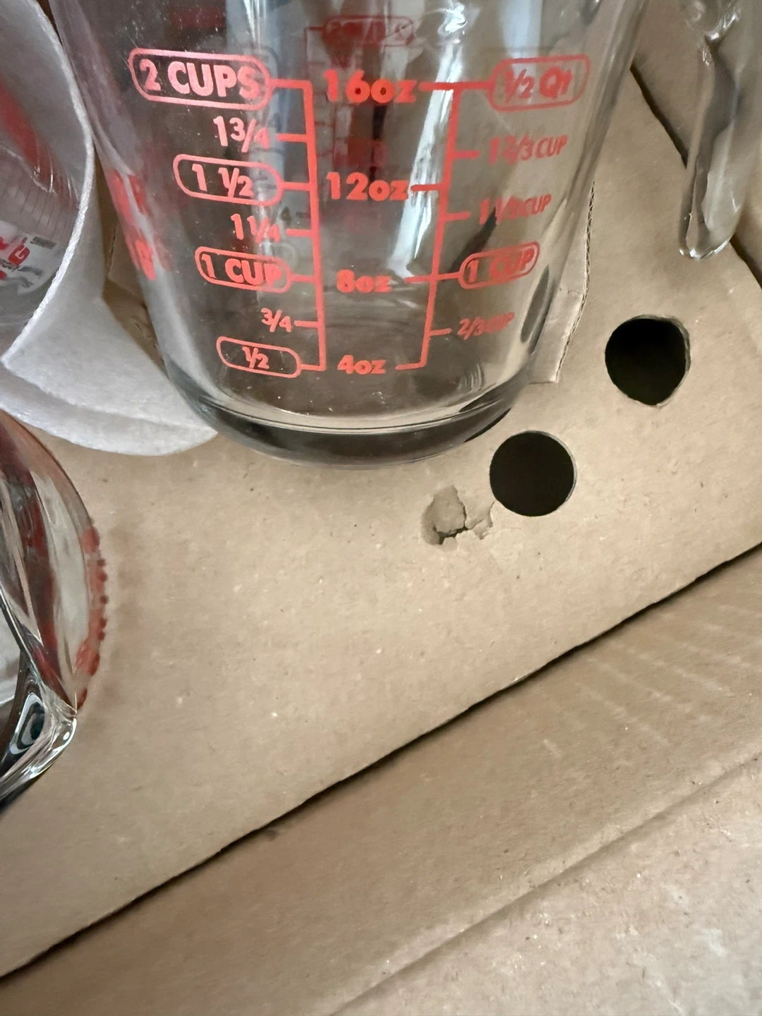 This set includes two glass measuring cups with red markings for both imperial and metric measurements. One cup measures up to 4 cups or 1 litre, while the other measures up to 2 cups or 500ml. They're useful for accurate ingredient measuring in the kitchen!