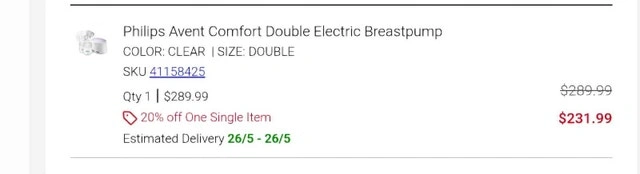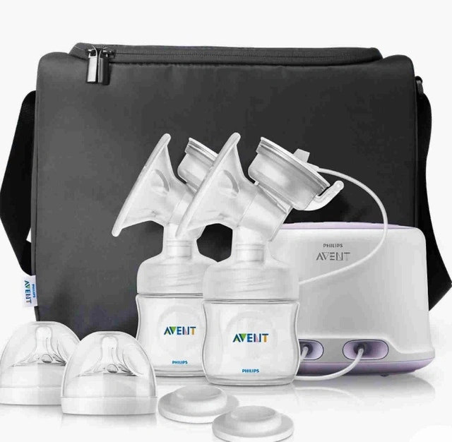 Used very lightly with my first child for about a week or two. Comes with storage bags. The included bottles were used when hand expressing with 3 kids, so they are in very used condition. The glass bottle was used only a couple of times and can be included as a freebie if you'd like. This breast pump retailed for $200, and I purchased it for $230. Everything is clean and in working condition. Includes a carry bag for convenience. Philips Avent Comfort Double Electric Breastpump, Clear, Double.