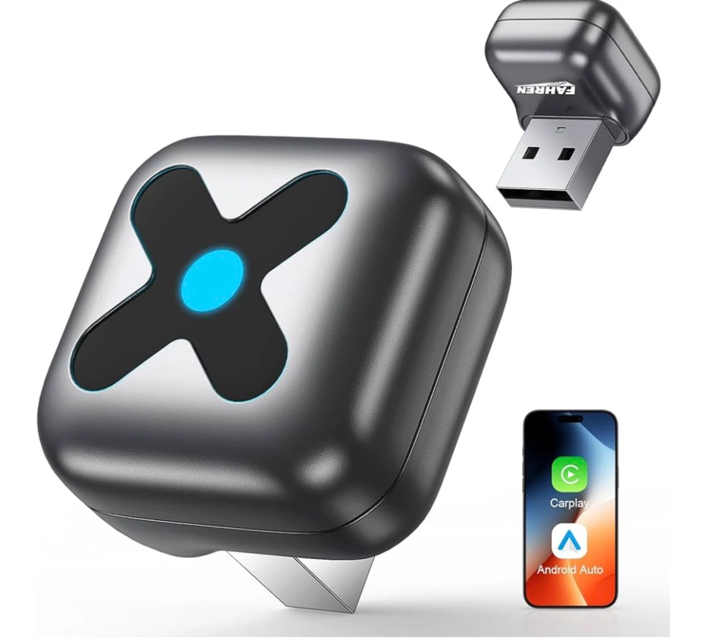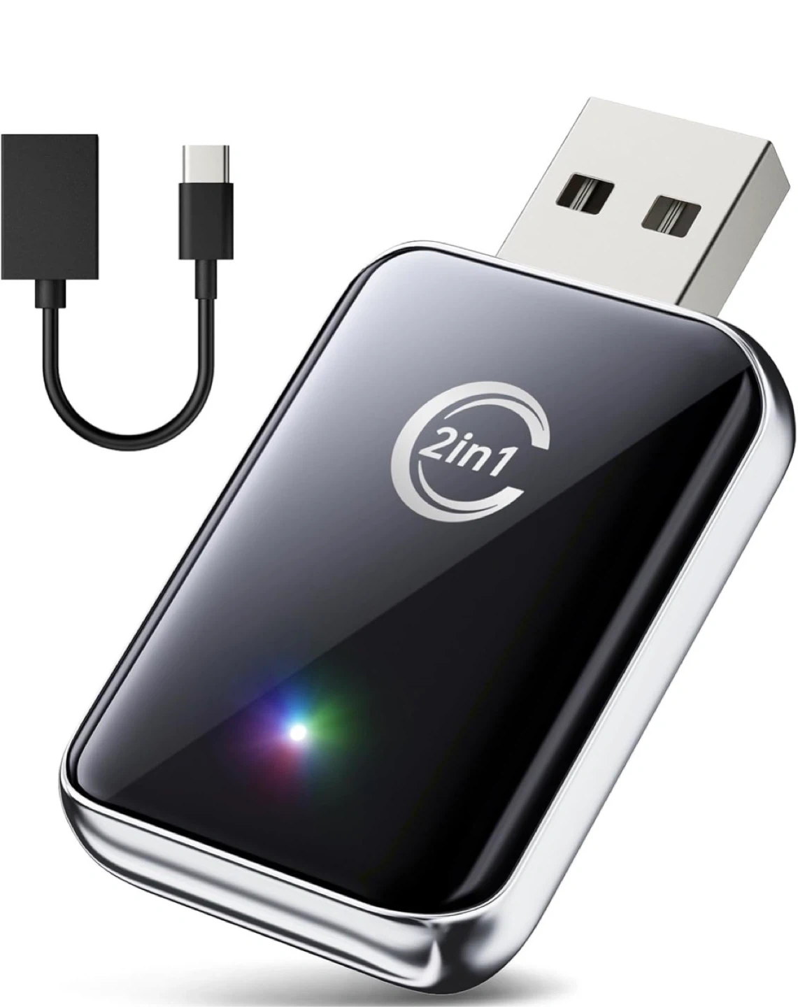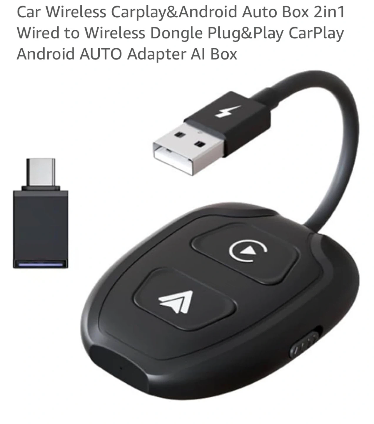 This is a 2-in-1 wired to wireless dongle that plugs into your car's USB port. It enables CarPlay and Android Auto functionality wirelessly. Simple plug-and-play setup for easy integration!