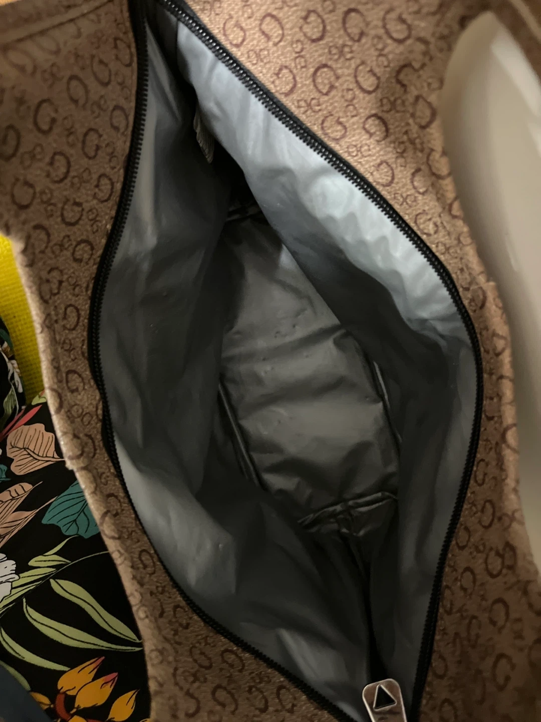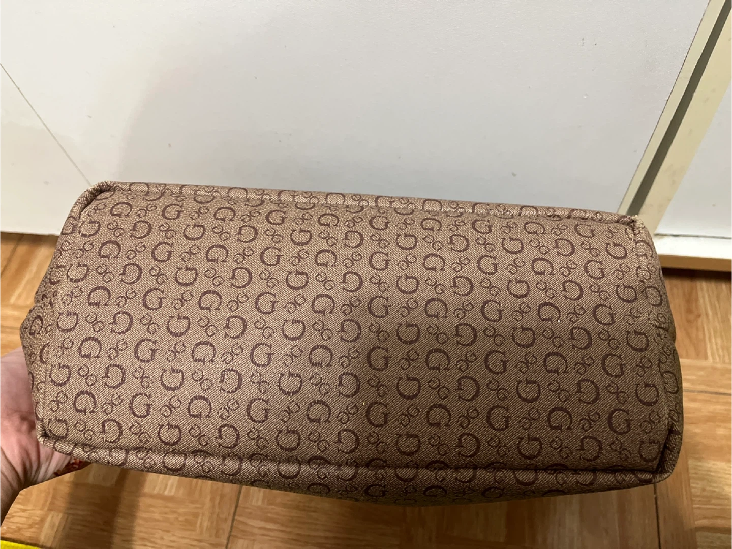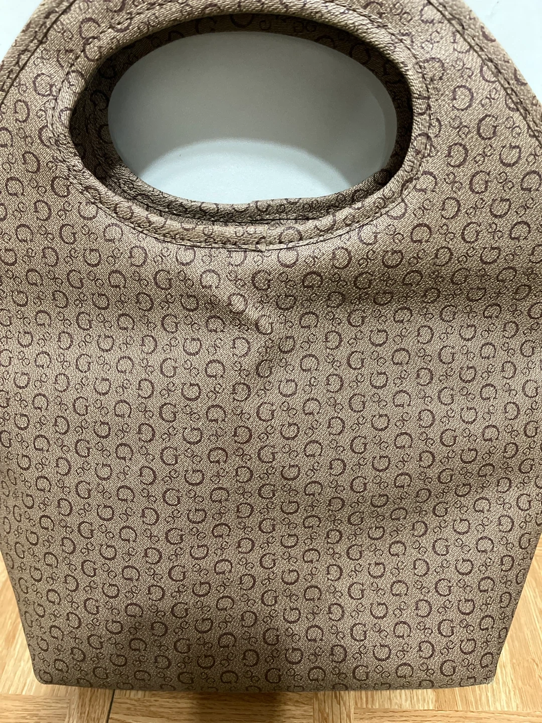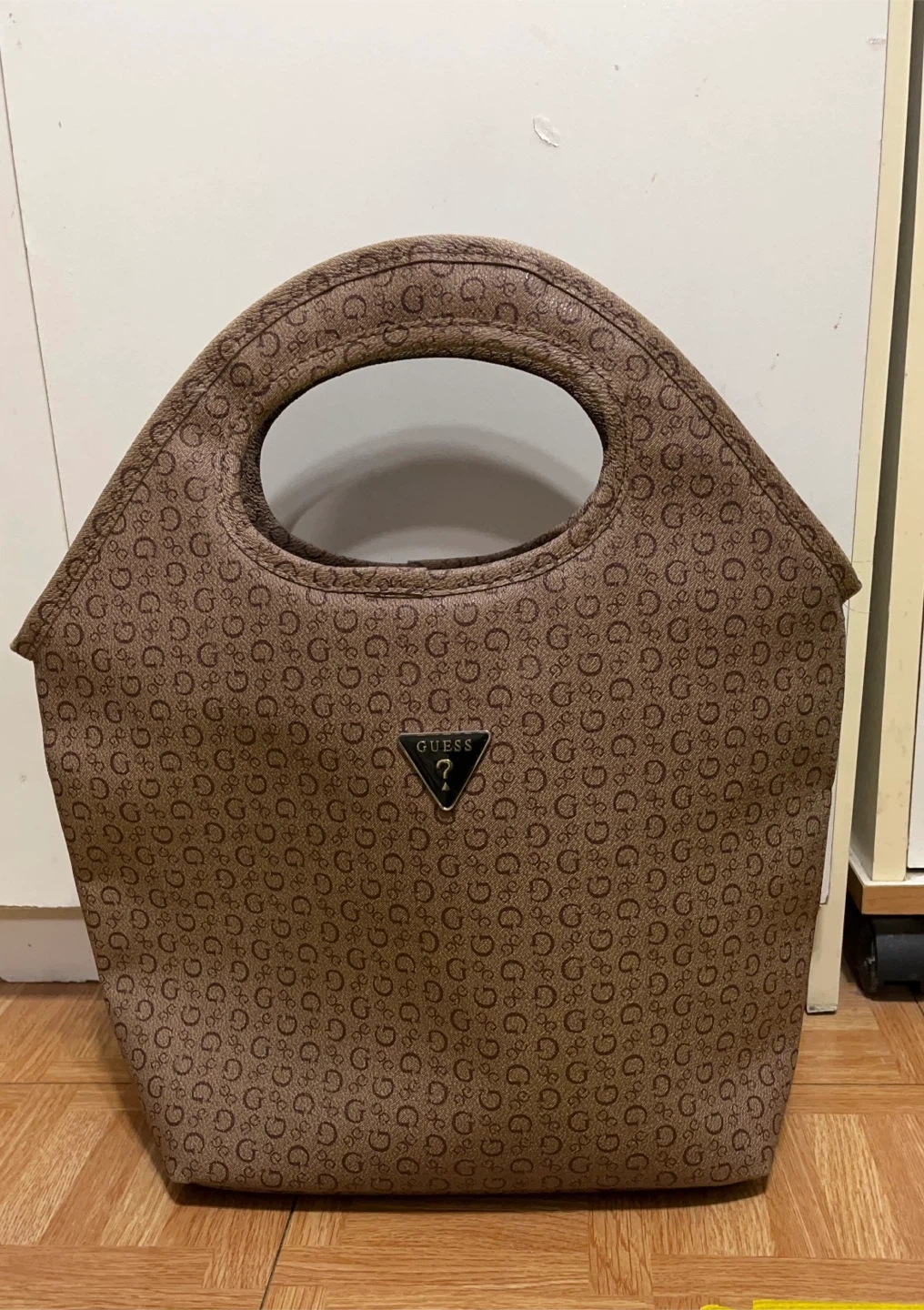 GUESS lunch tote bag. Brown leather. It has a zippered top for secure closure. The interior is lined and is insulated. This bag is great for everyday use!
