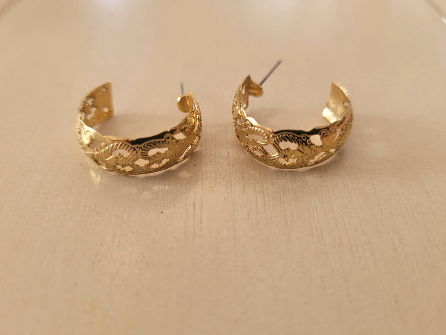 One of the earrings has a slight bend in the loop as seen in the photo (gently loved)