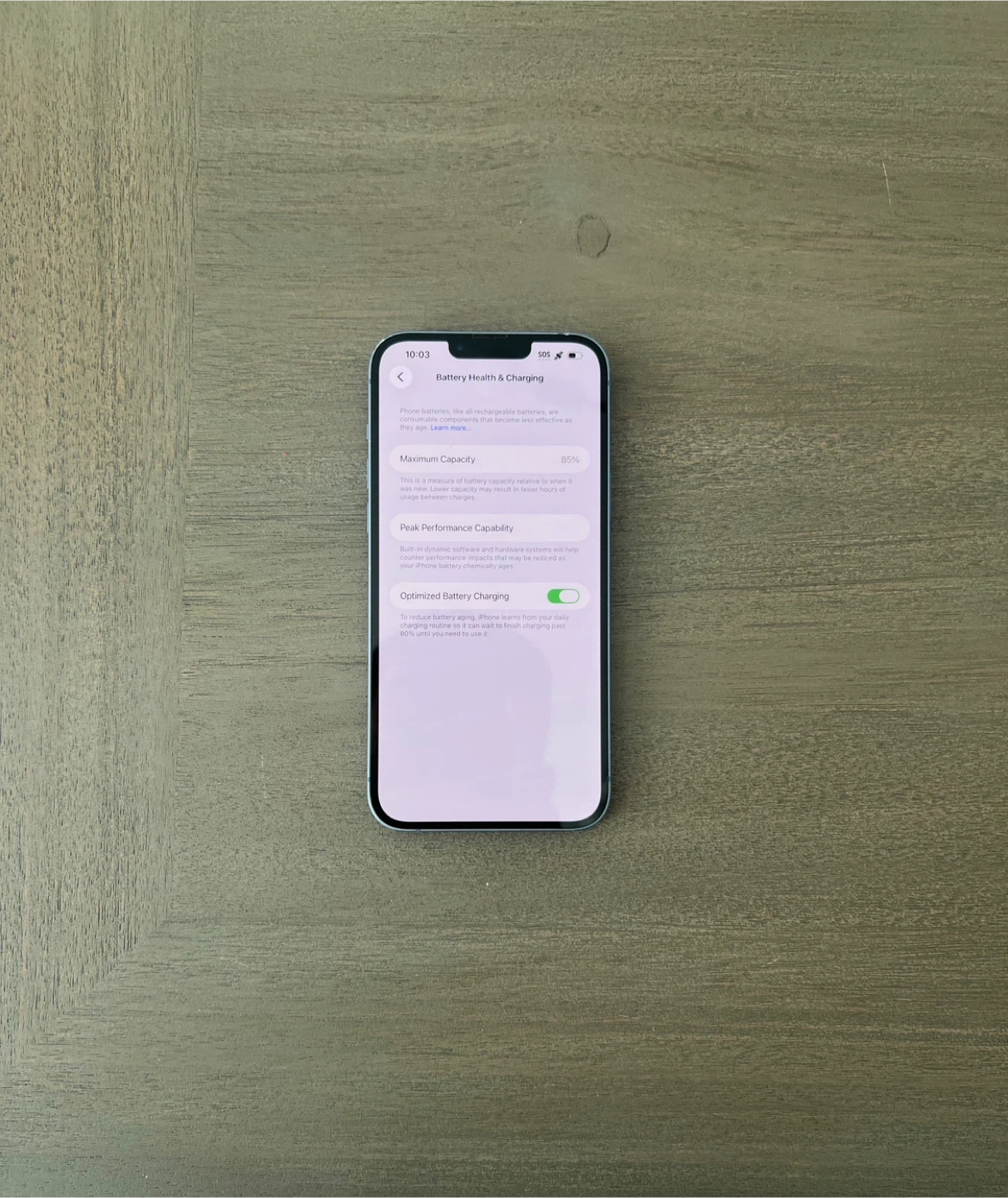 Phone is in mint condition with 85% battery health, all original parts, and no issues. It’s factory reset and ready for a new user.