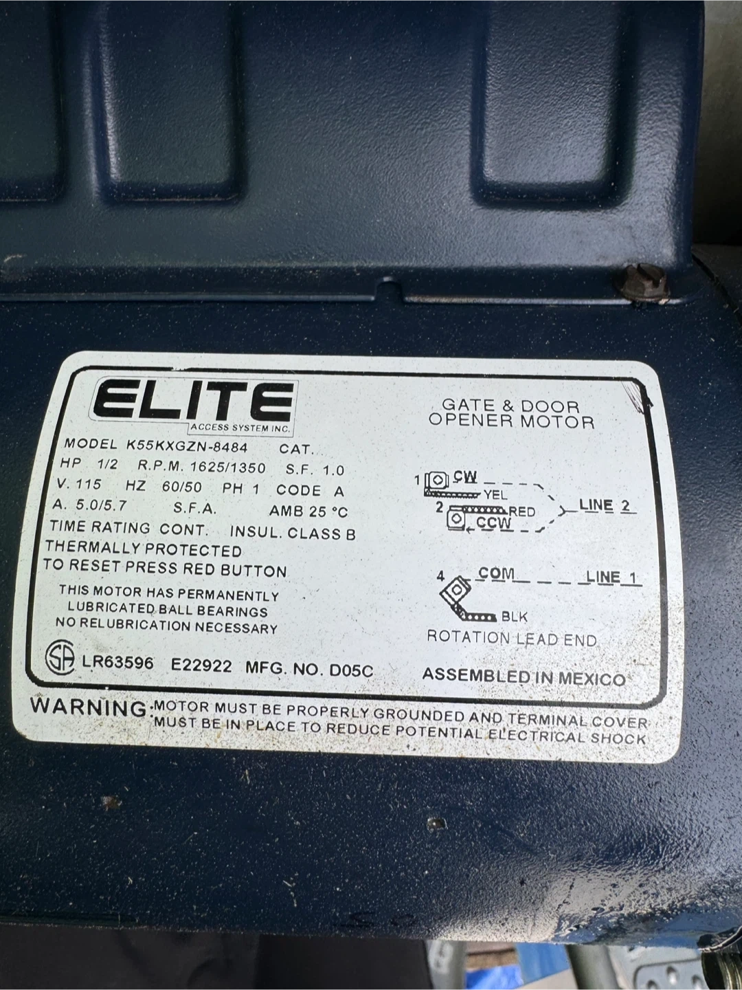 Motor is tested and working, Model K55KXGZN-8484. It's rated at 1/2 HP, and V. 115. This motor has permanently lubricated ball bearings. It comes with a gearbox and mounting plate.