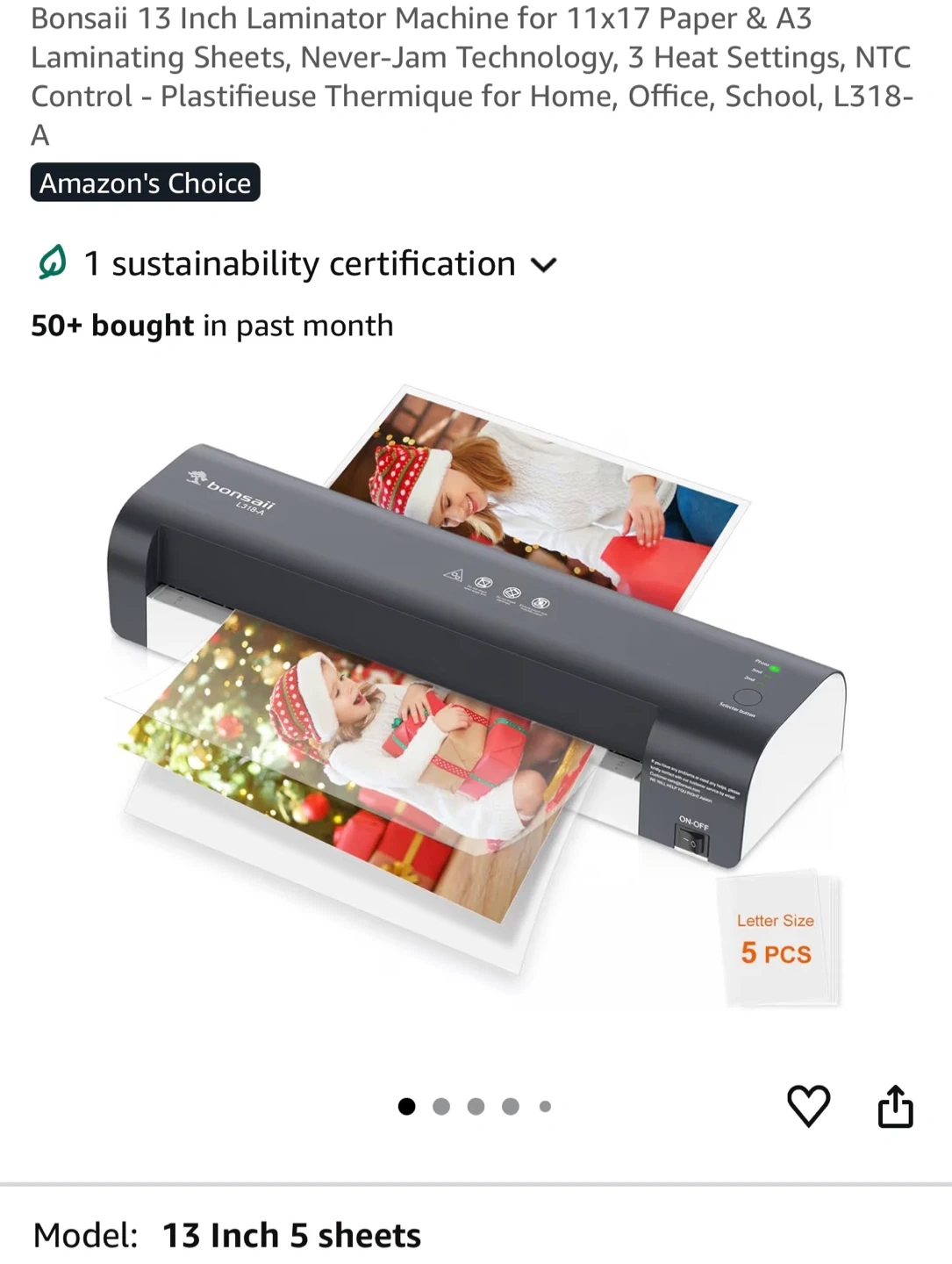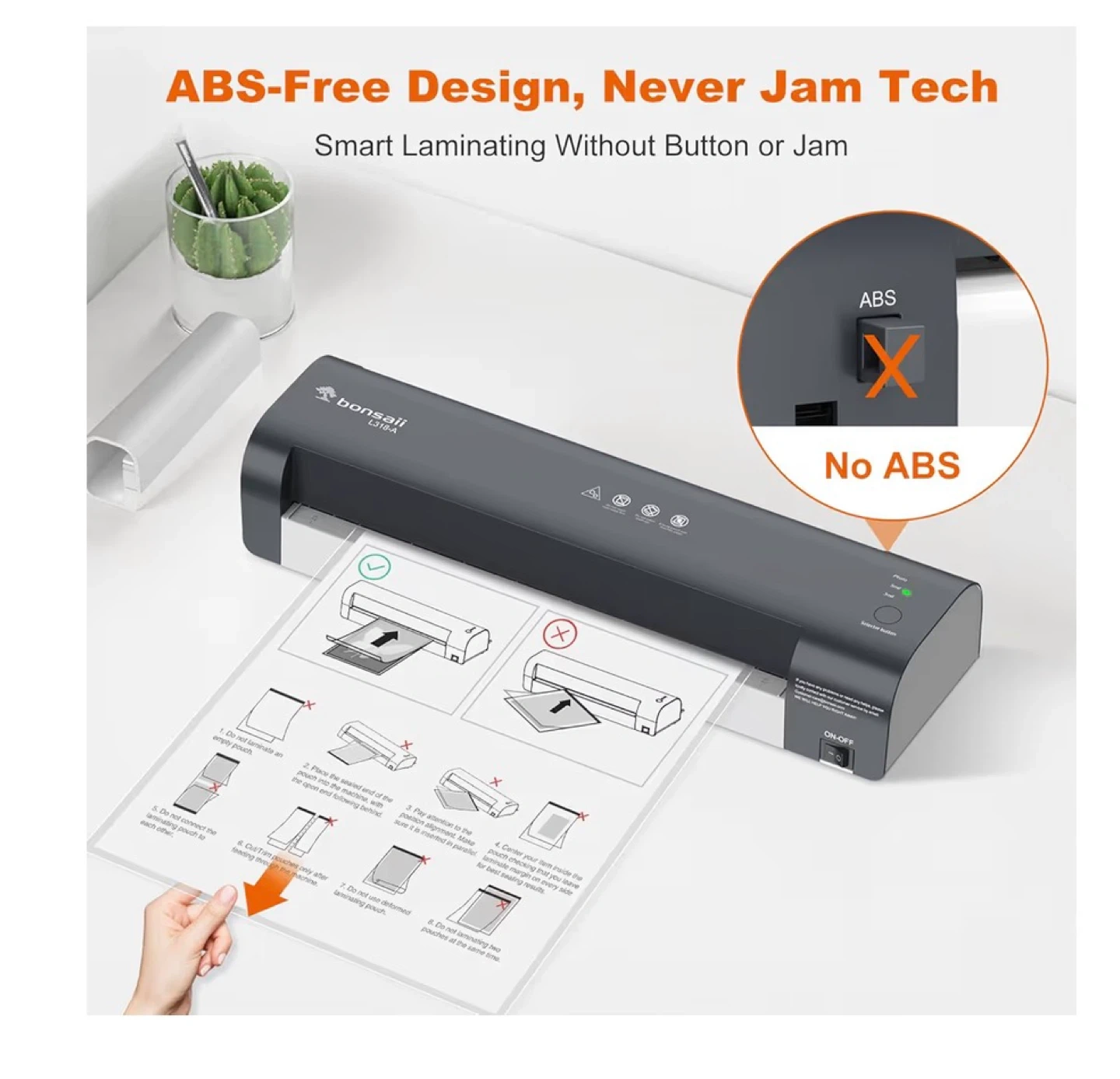 Selling a Bonsaii L318-A 13 Inch Laminator. It features Never-Jam Technology to ensure smooth laminating and protect your valuable documents.