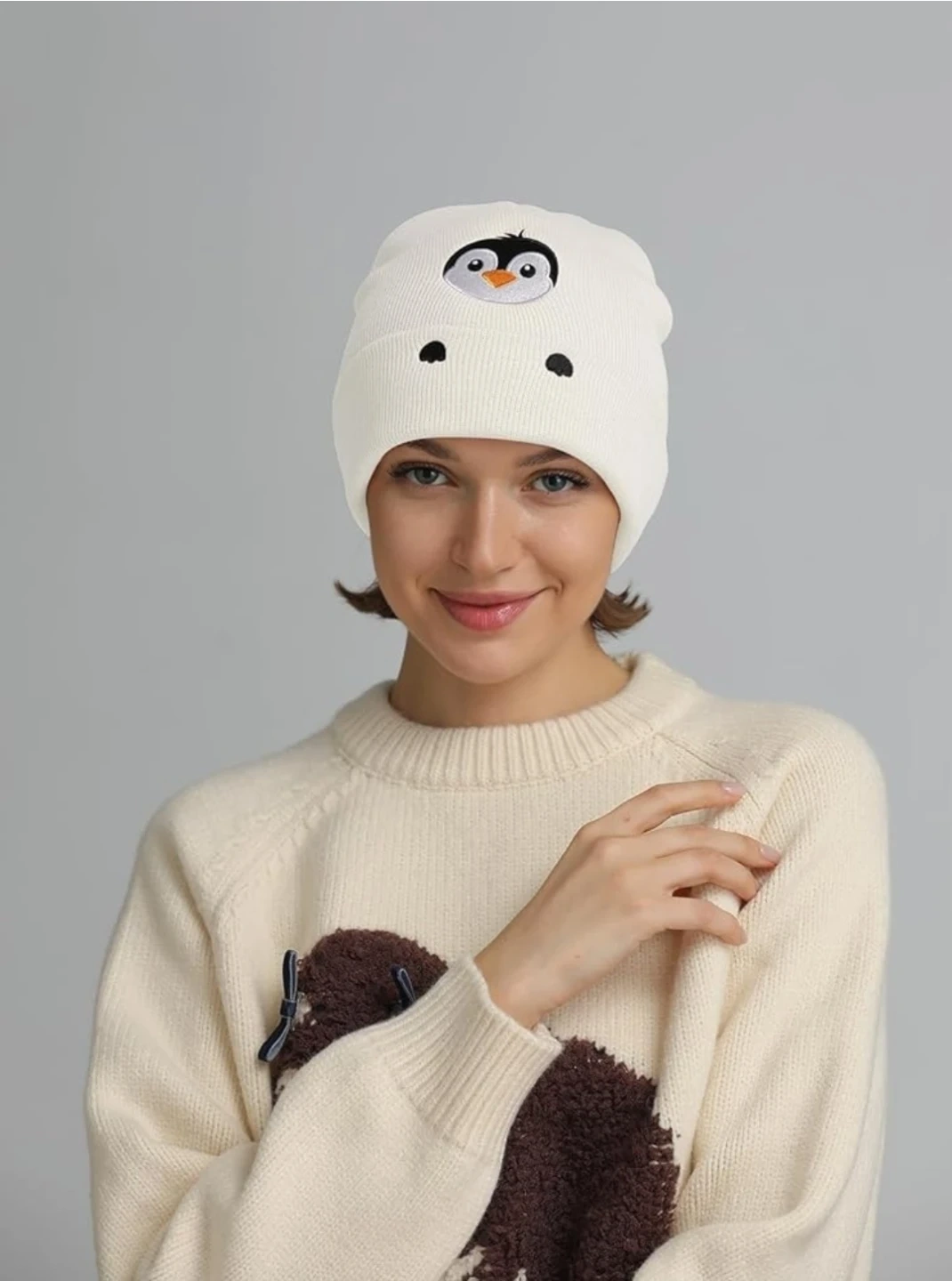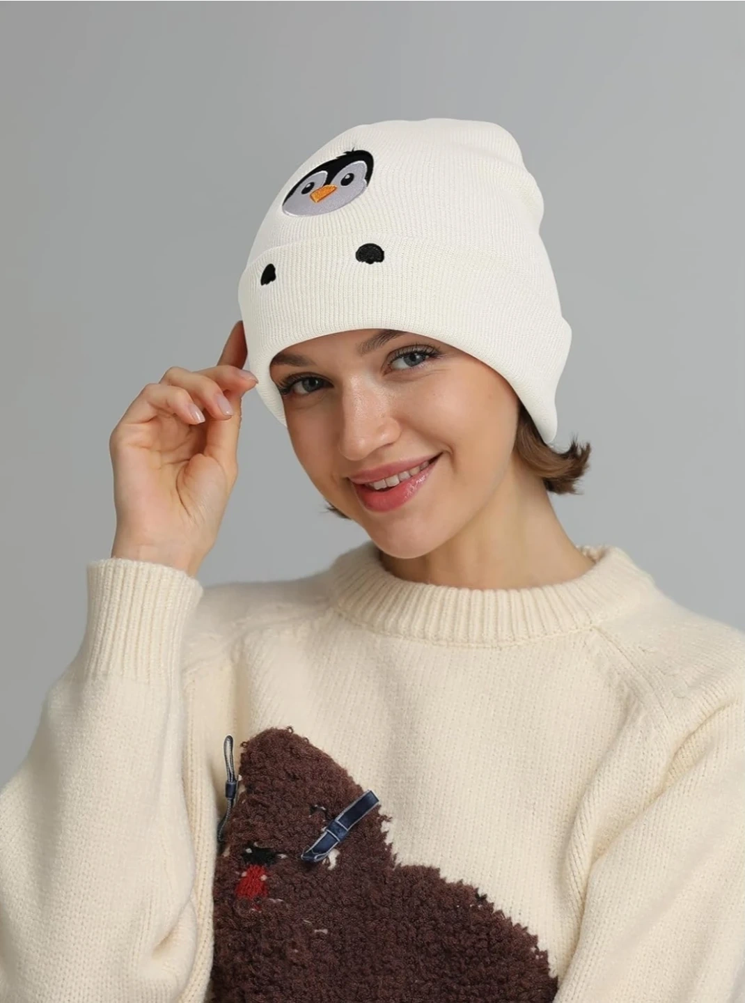 The soft knit design keeps your head warm while the charming penguin embroidery adds a playful personality to your outfit.
