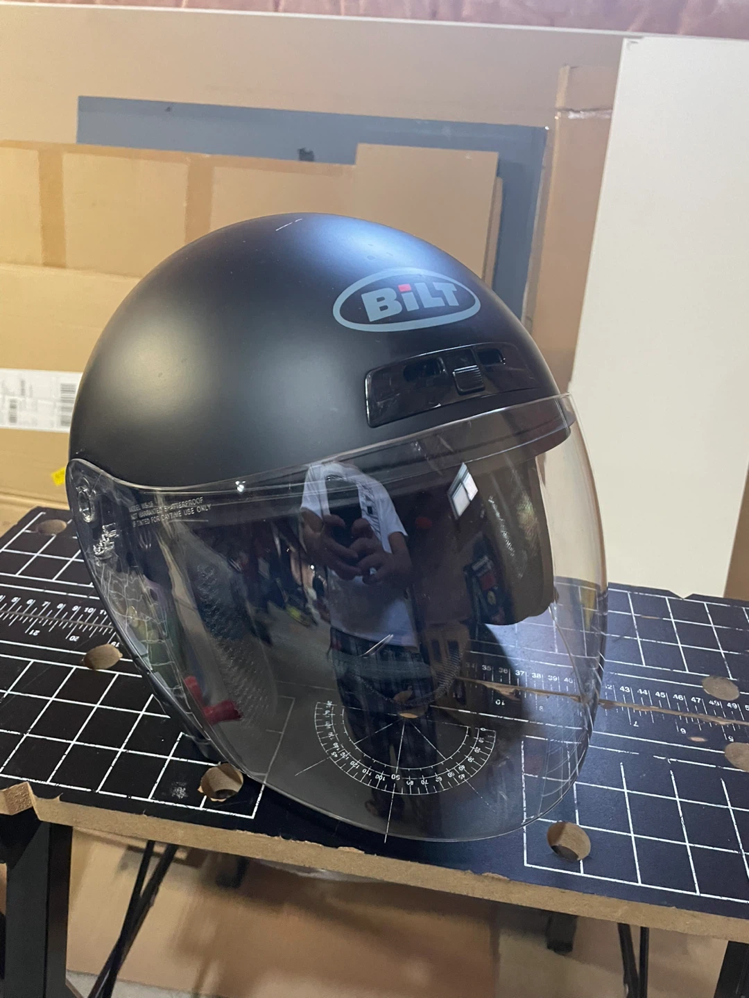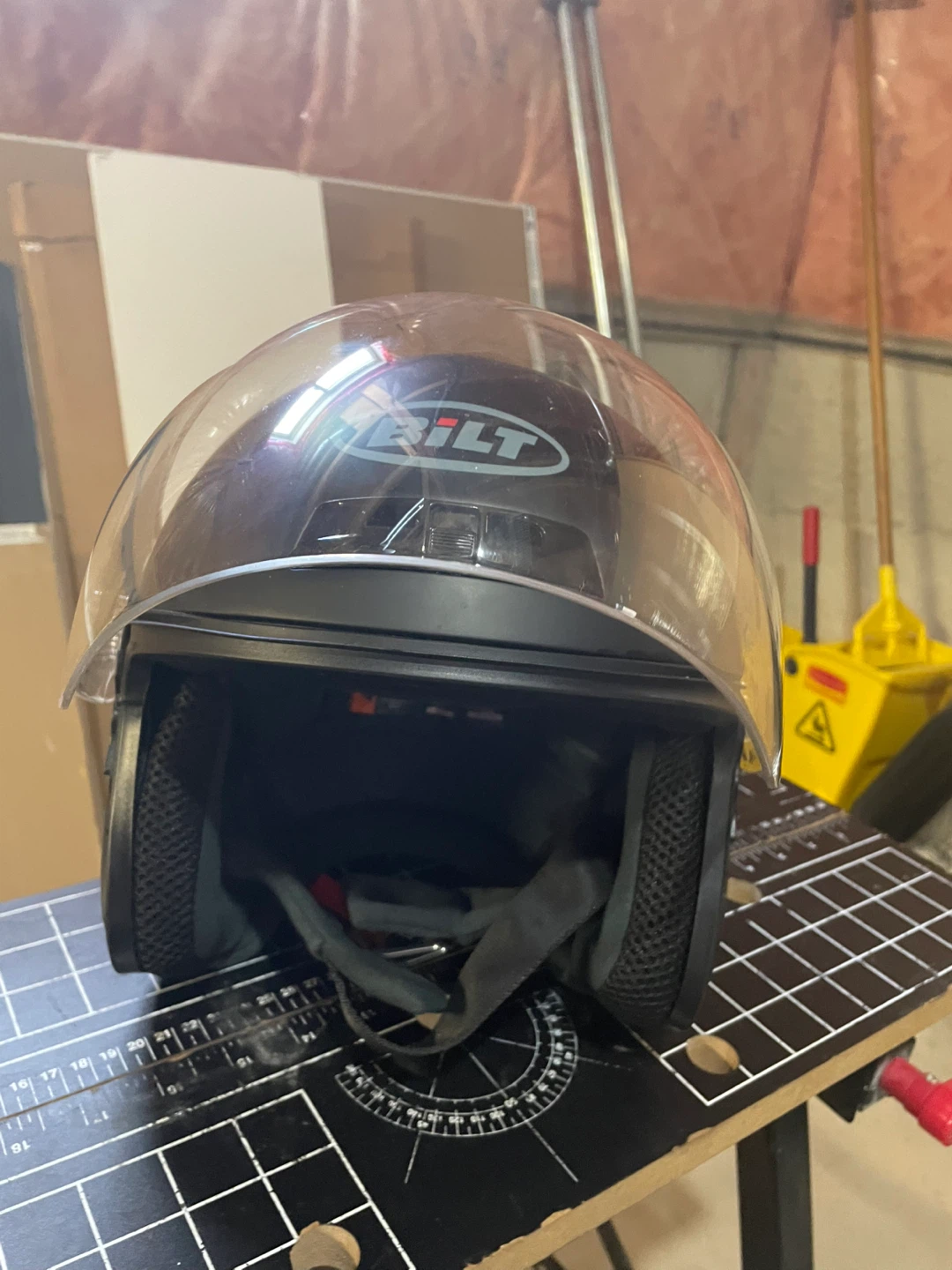 Selling a BILT motorcycle helmet in black, size L. It's in good condition and ready for a new rider! The helmet features a clear visor.
