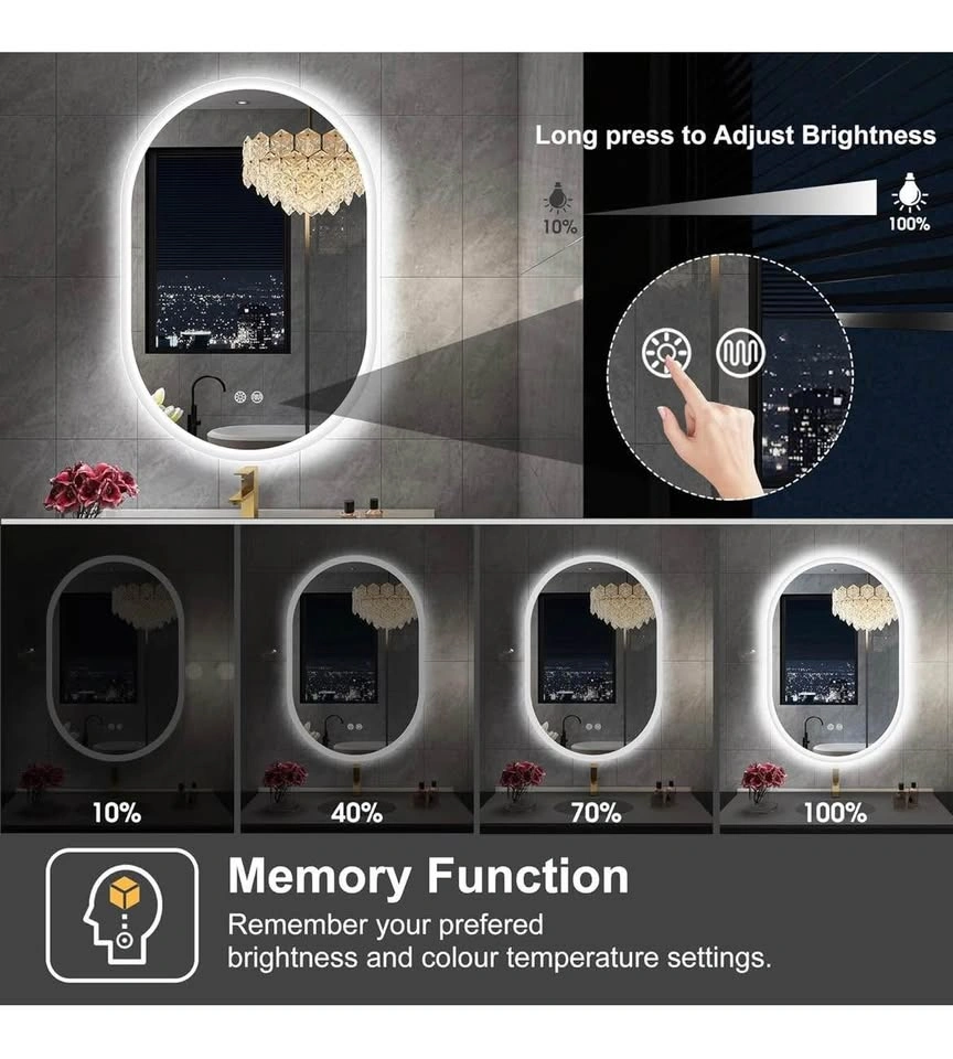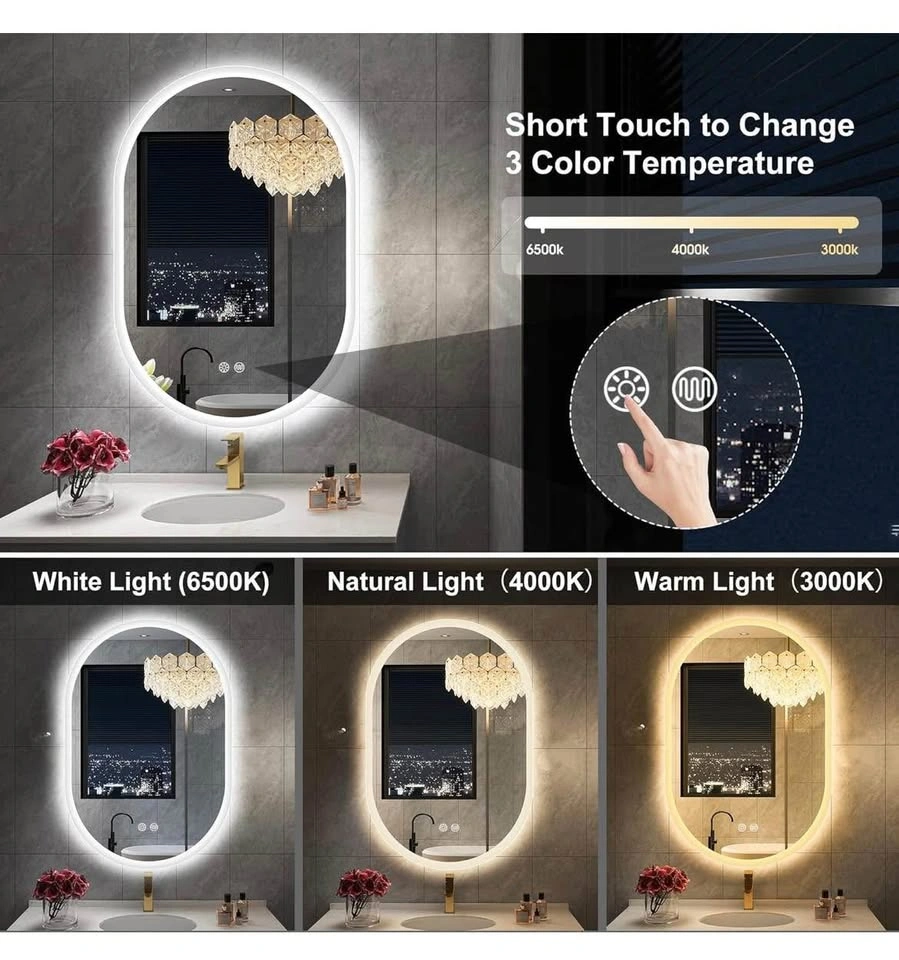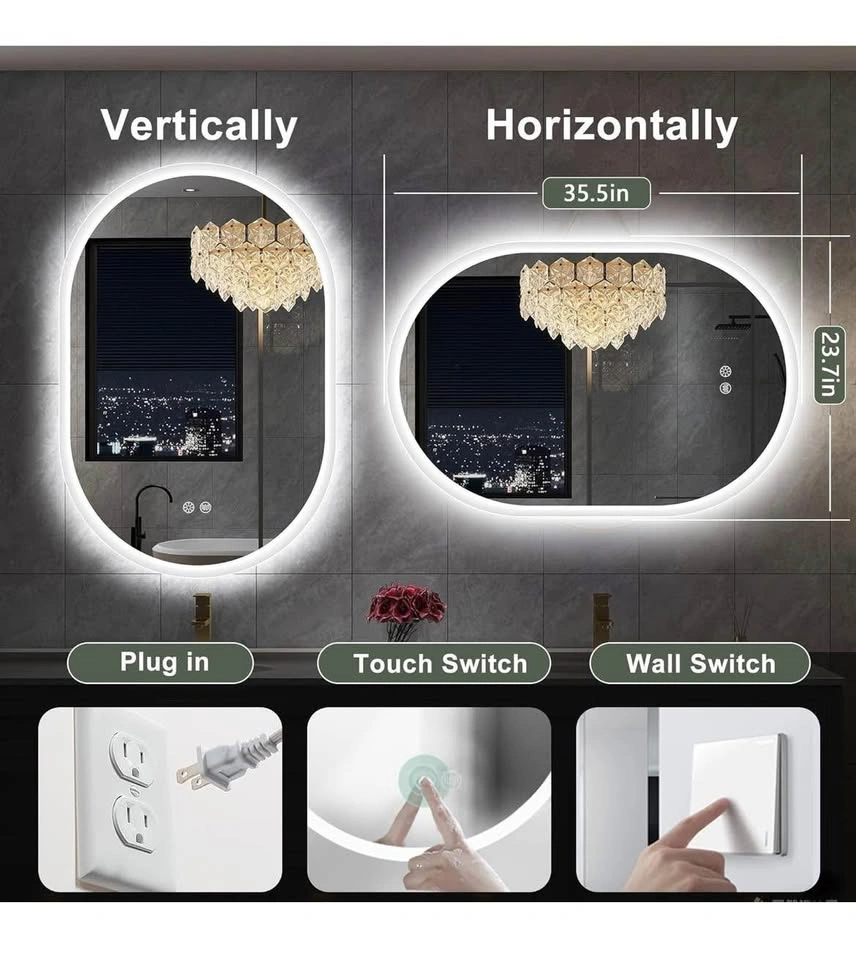 S·BAGNO 24''x36'' Oval LED Bathroom Mirror with Lights, Anti-Fog, 3 Colors Temperature & Dimmable, Lighted Mirrors for Bathroom Wall with Memory Function, Waterproof, Shatter-Proof