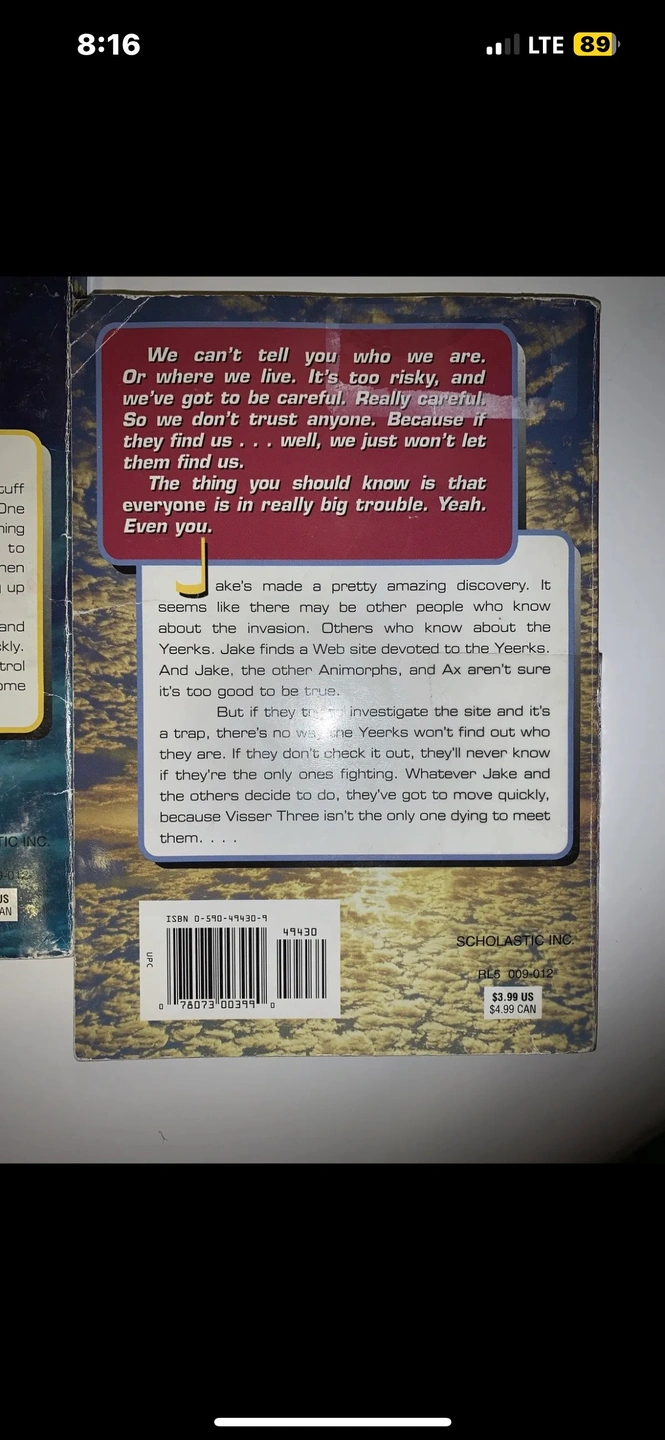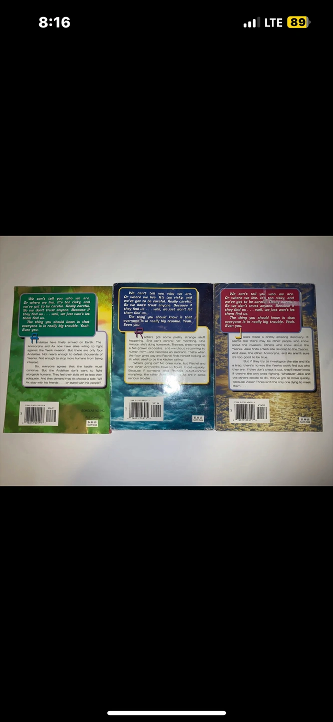 ANIMORPHS Scholastic Book Lot (x3) K.A Applegate. Early 2000s. The books are in pretty decent condition, one book has a bit of the cover ripped- but the spines & pages are all intact & in decent condition!