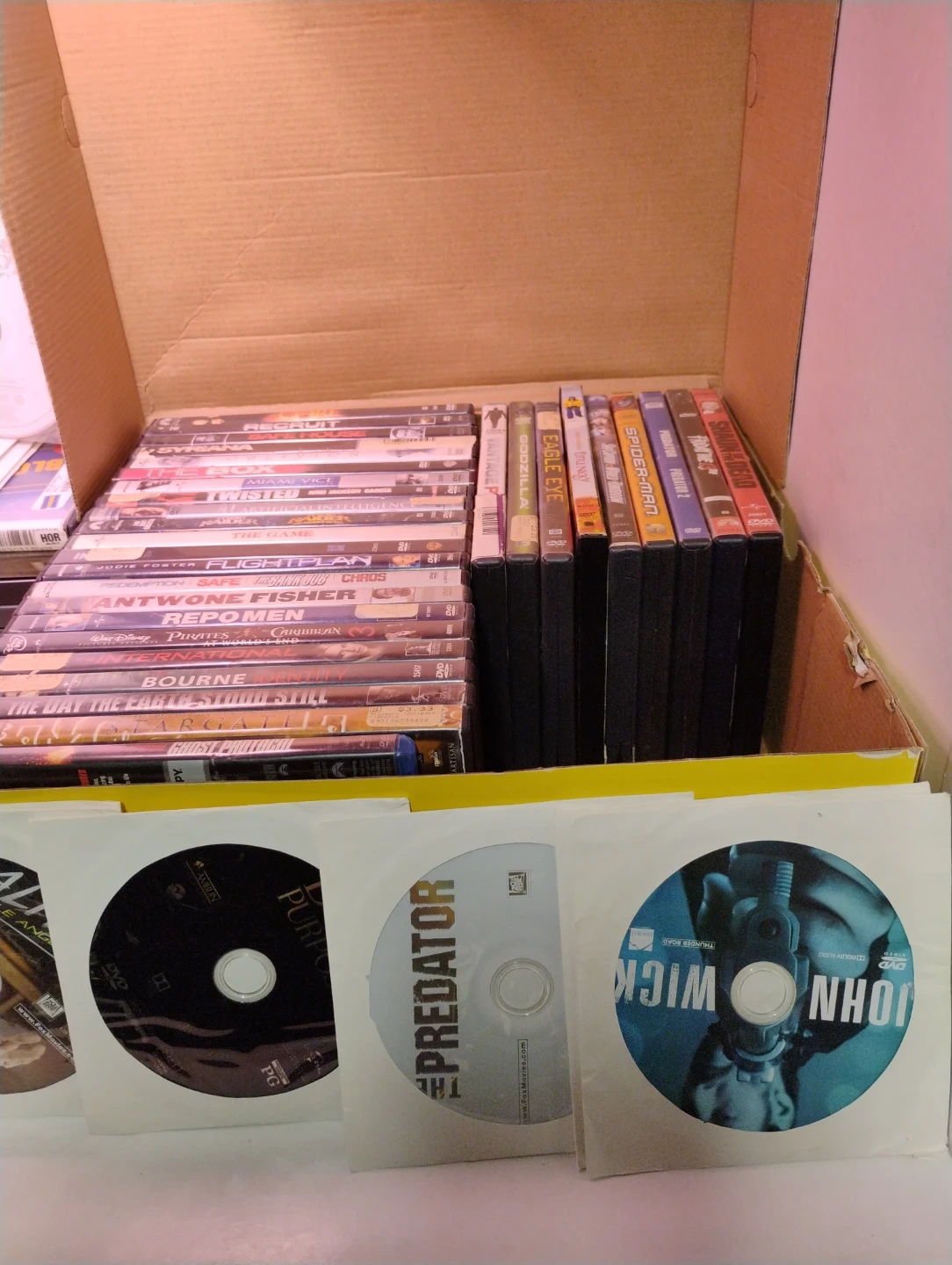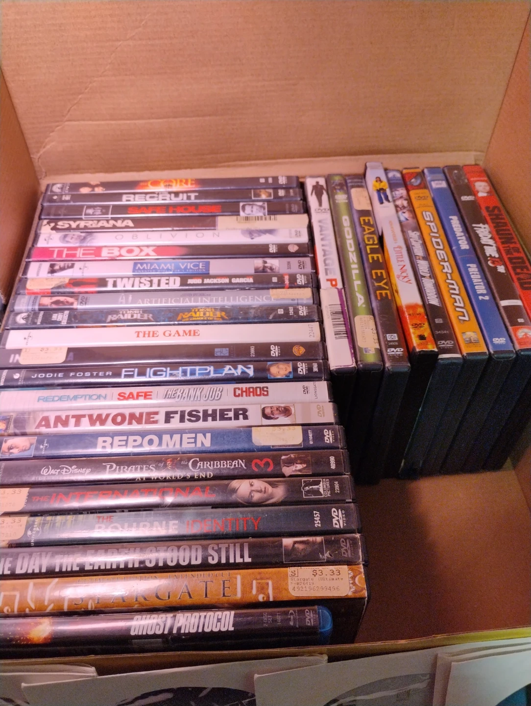 Free. The movies in the box have scratches. The ones outside juts missing box but clean condition no scratches. I'm pretty sure the ones in box work but not worth selling. Take everything for free