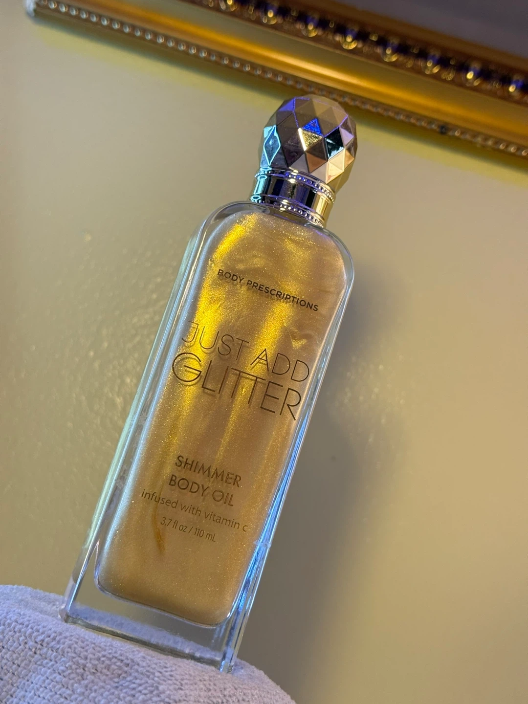 Body Prescriptions Shimmer Body Oil. Infused with vitamin C. Apply a few drops after showering to add shimmer to your skin. 3.7 fl oz / 110 mL.
